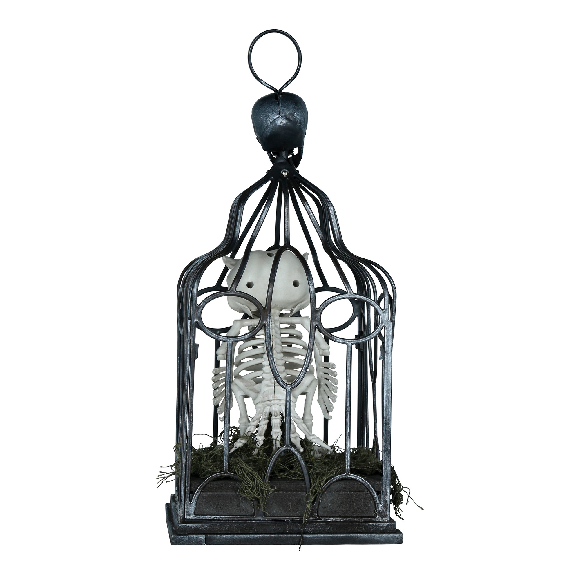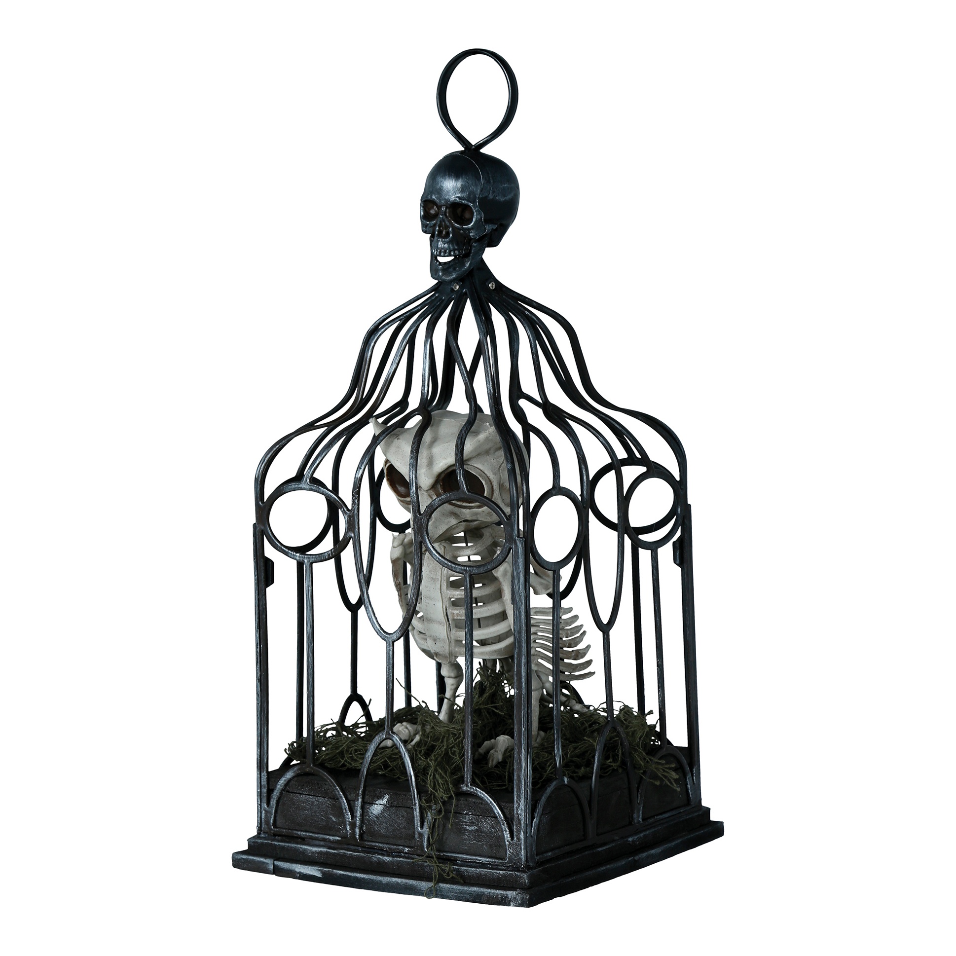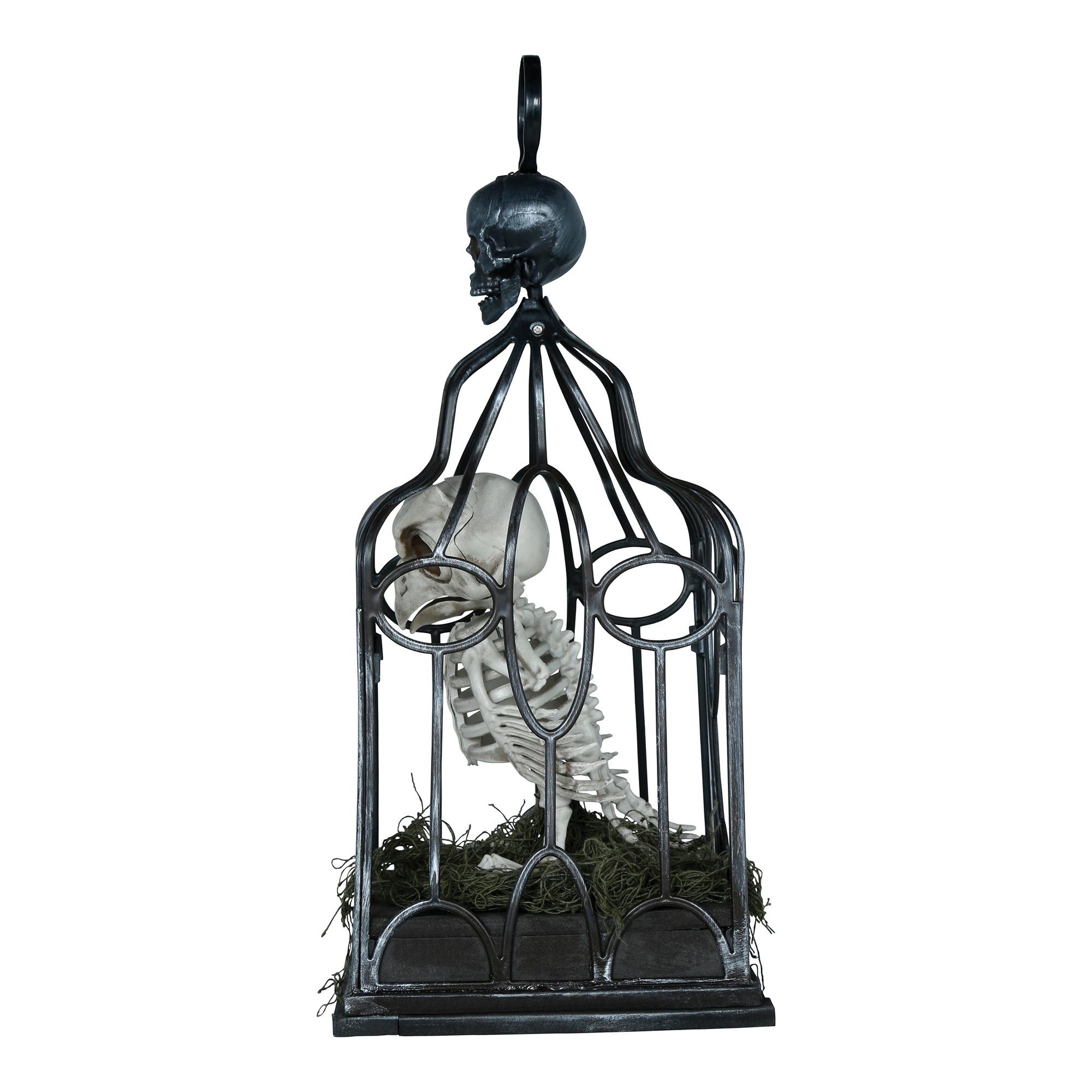 Käfig mit Eulen-Skelett mit Licht, Ton und Bewegung - 33 cm