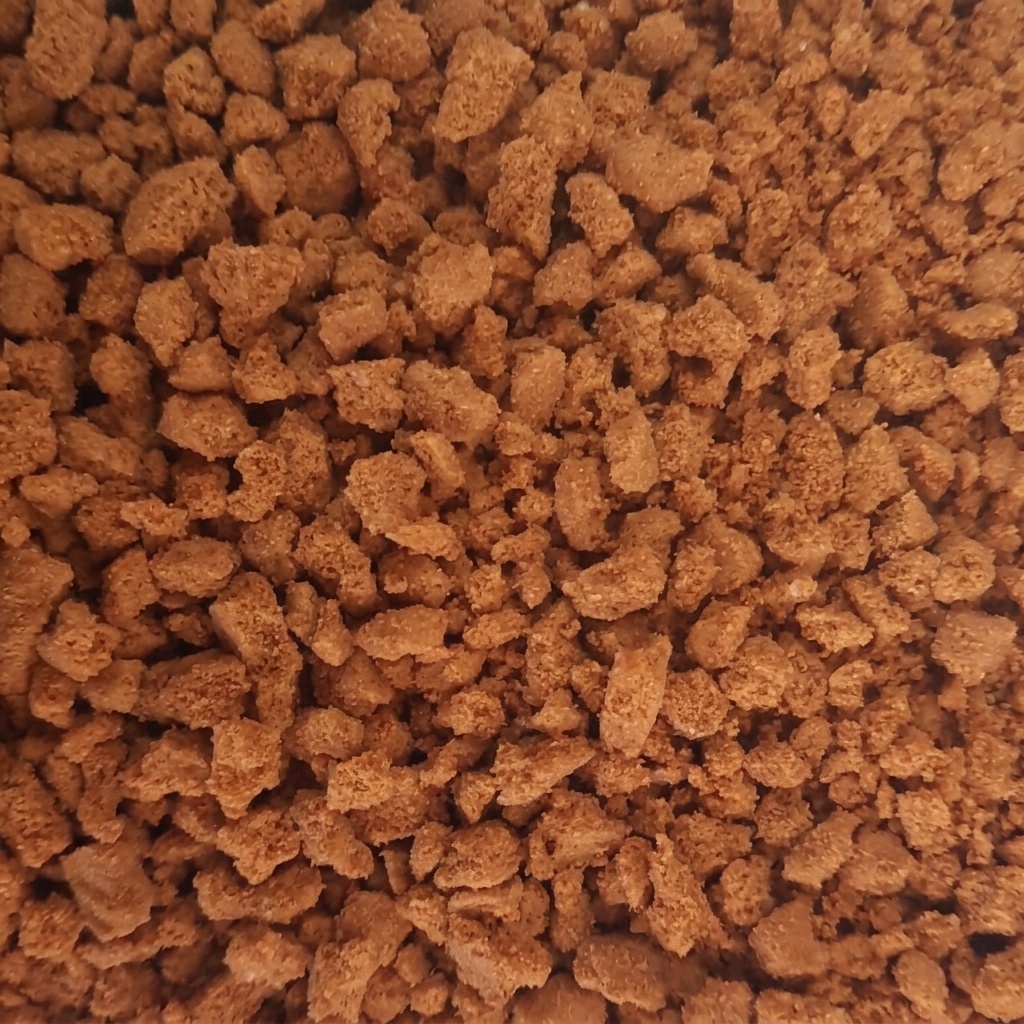 Karamellisierte, grob zerbröselte Kekse mit knuspriger Textur und leicht geröstetem Aroma - entwickelt für den professionellen Einsatz in Konditorei und Gastronomie.