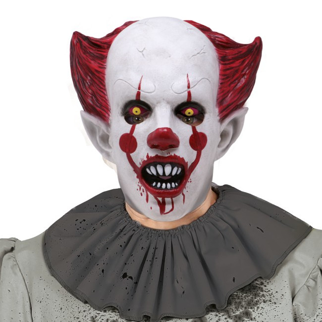 Verkleiden Sie sich zu Halloween mit dieser Maske, die an die Figur des Pennywise aus dem Film Es erinnert.