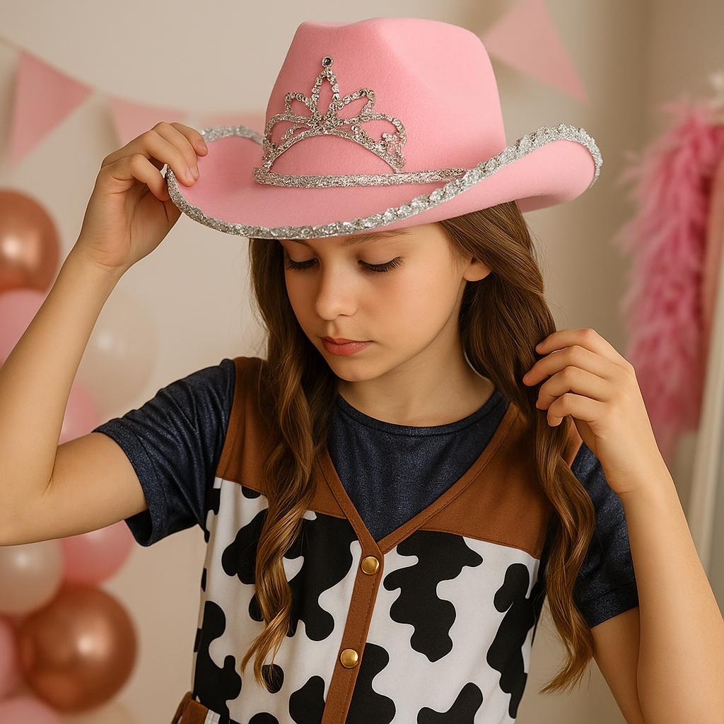 Kinder-Cowboyhut mit rosa Tiara