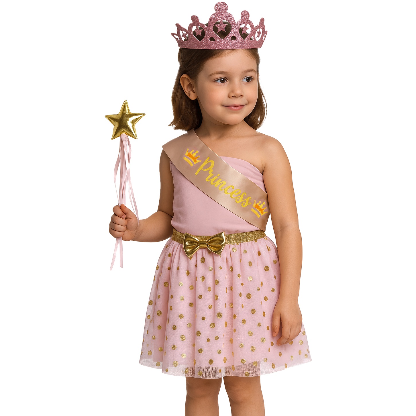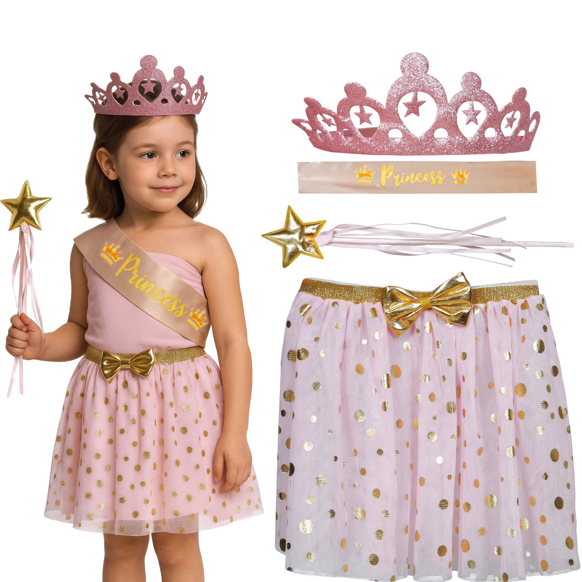 Kinder-Prinzessinnen-Set mit Krone, Schärpe, Rock und Zauberstab