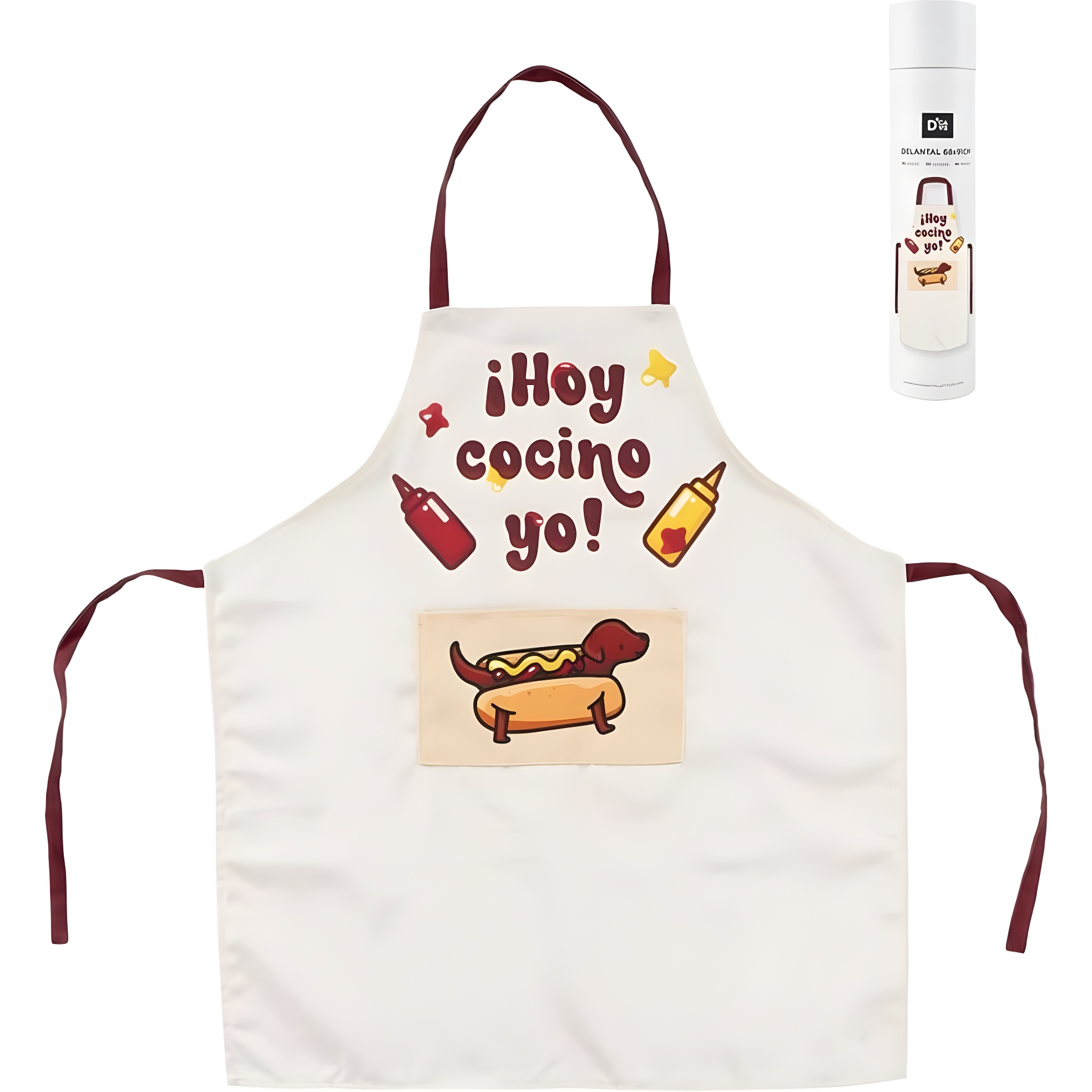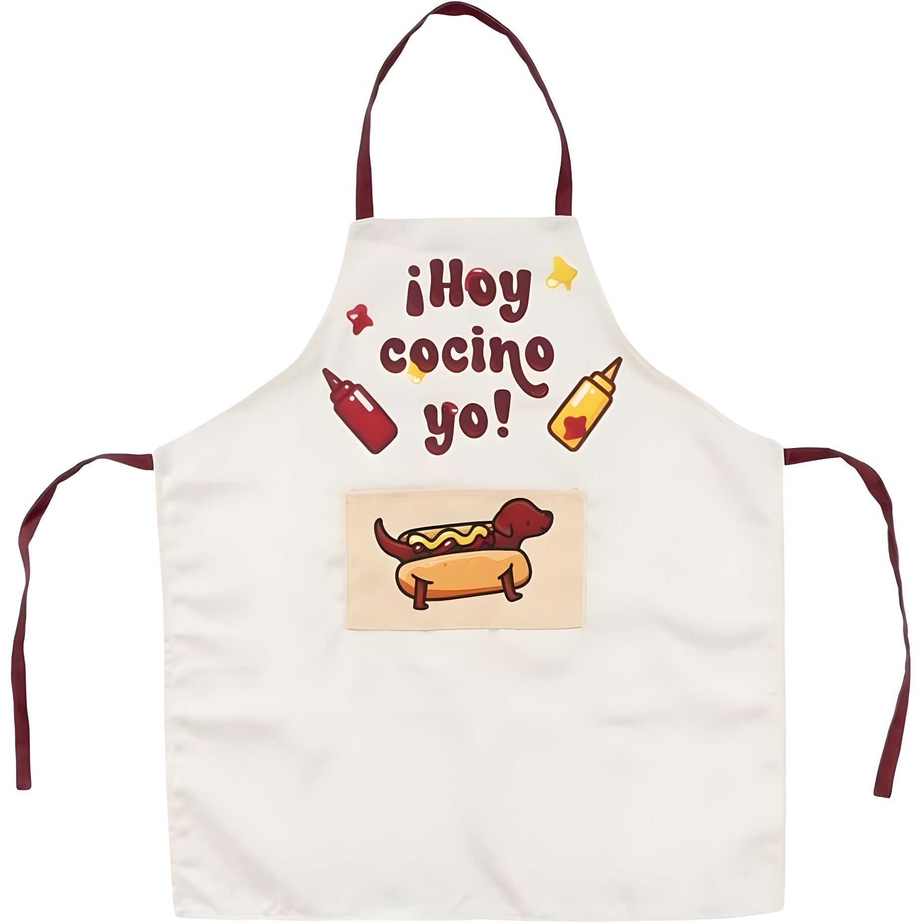 Kinder-Schürze mit einem lustigen Hot-Dog-Motiv und kräftigen Farben, die den Kleinen gefallen.
