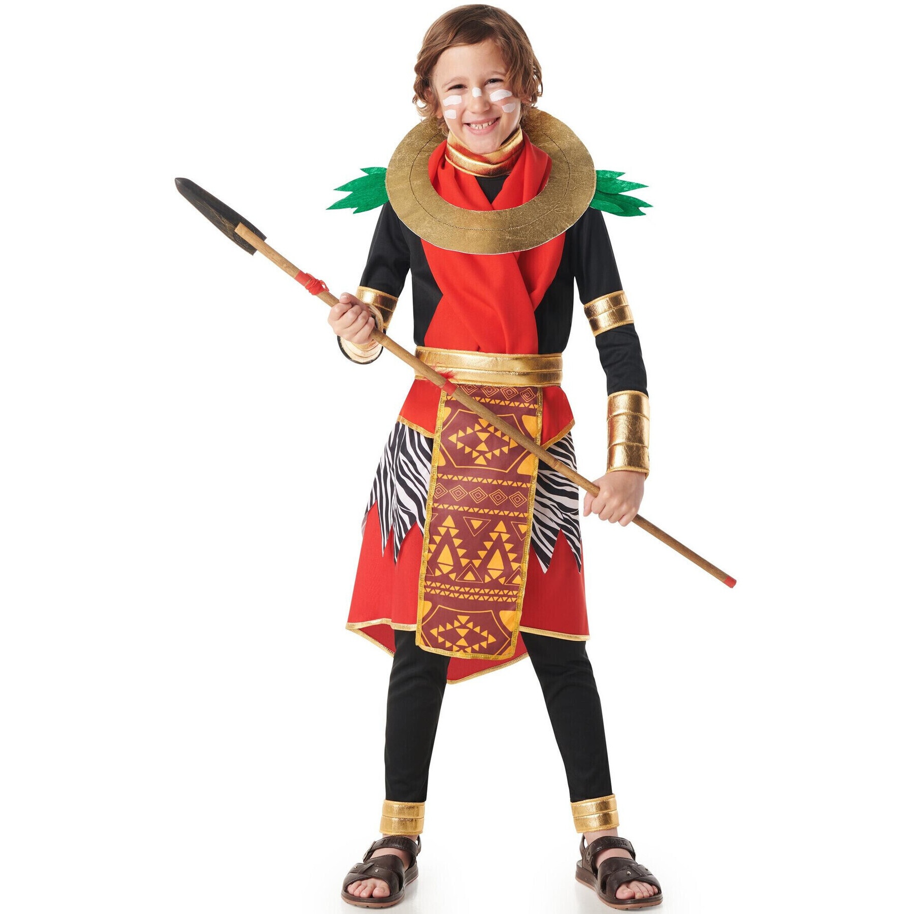 Ein beeindruckendes Kinderkostüm im Stil eines afrikanischen Maasai, das sowohl für Jungen als auch für Mädchen geeignet ist. Dieses Kostüm lässt kein Detail vermissen.