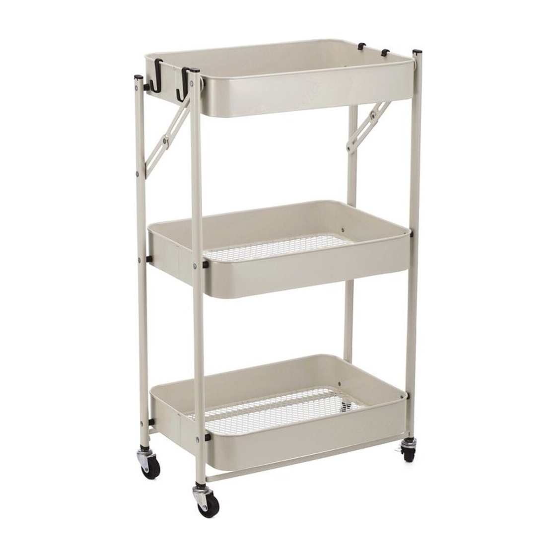 Klappbarer, vielseitig nutzbarer Beistellwagen in naturfarbener Ausführung, entwickelt, um Ihnen die Organisation in Küche und Haushalt zu erleichtern. Die dreistufige Konstruktion bietet praktischen Stauraum für Küchenutensilien, Reinigungsmittel, Badaccessoires oder Büromaterial. Drehbare Rollen und das kompakte Design ermöglichen ein einfaches Transportieren zwischen Räumen sowie platzsparendes Verstauen, wenn der Wagen nicht in Gebrauch ist. Die neutrale Oberfläche lässt sich mühelos in jeden Einrichtungsstil integrieren.