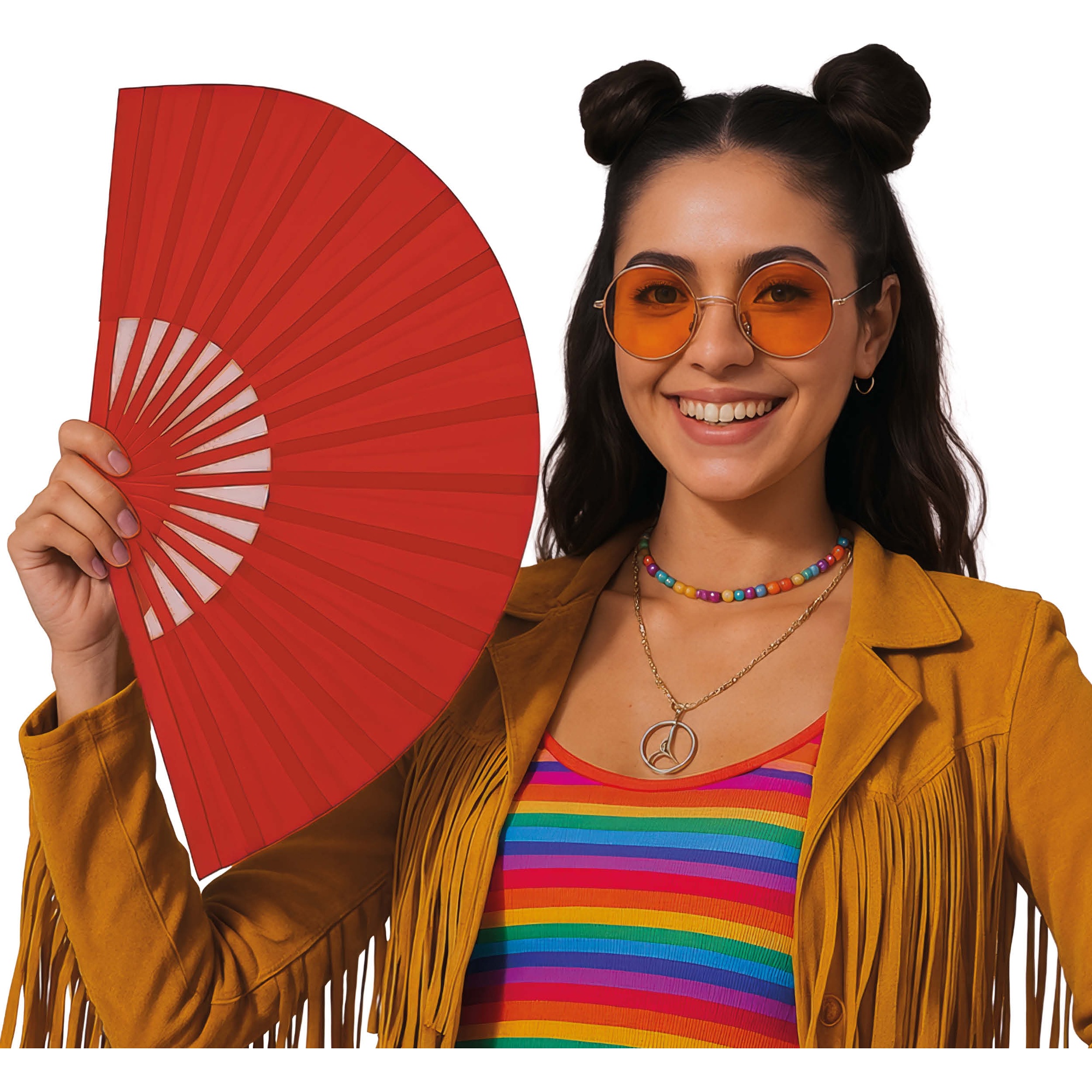 Faltbarer Stofffächer 60x30 cm. Leicht und handlich verleiht er Ihrem Look und jedem Ambiente eine elegante, festliche Note. Das faltbare Format erleichtert Ihnen den Transport und die Aufbewahrung. Perfekt, um Ihr Kostüm zu vervollständigen, Partys zu beleben und bei Fotoshootings sowie Auftritten hervorzustechen.