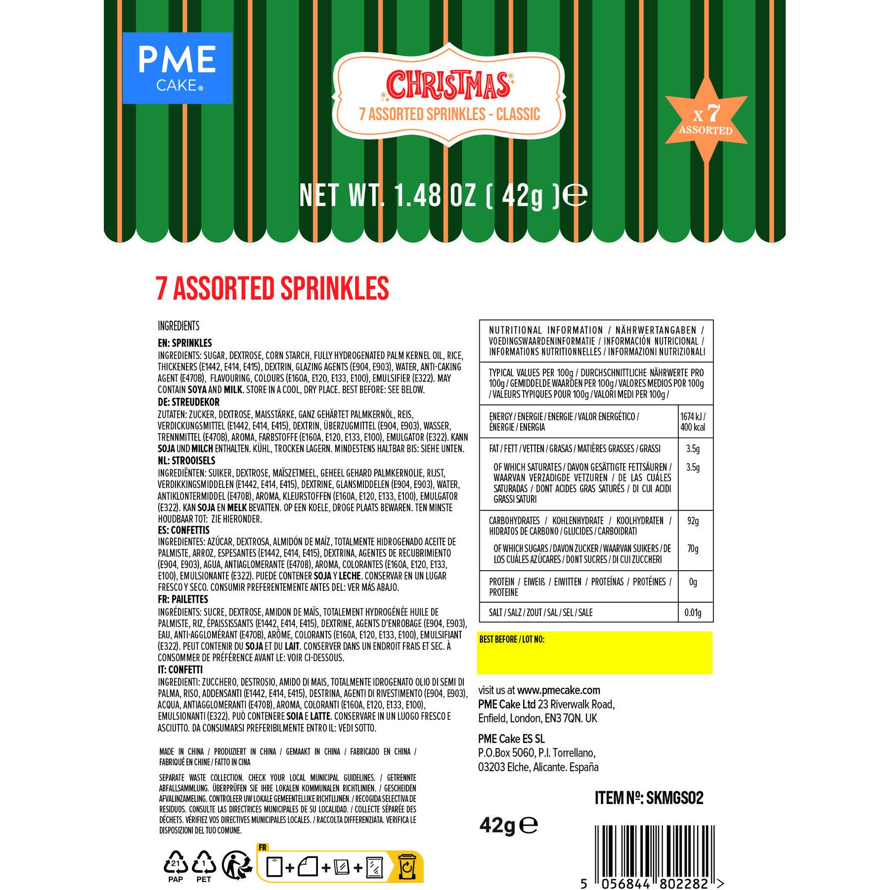 Klassisches Streusel-Set mit 7 Sorten - PME - 42 gr