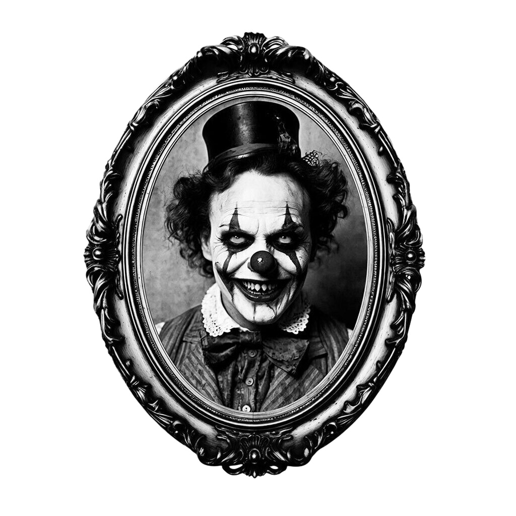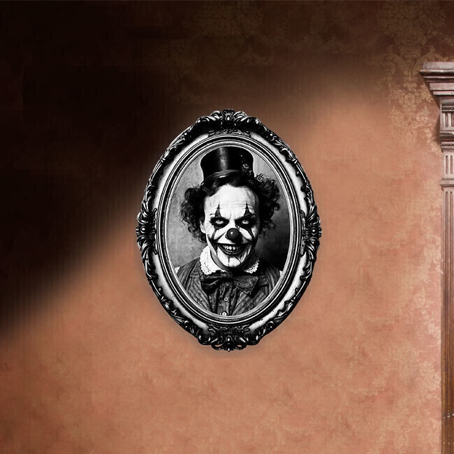 Klebende Wanddekoration mit einem Clown-Bild in einem Rahmen, 30 x 23 cm
