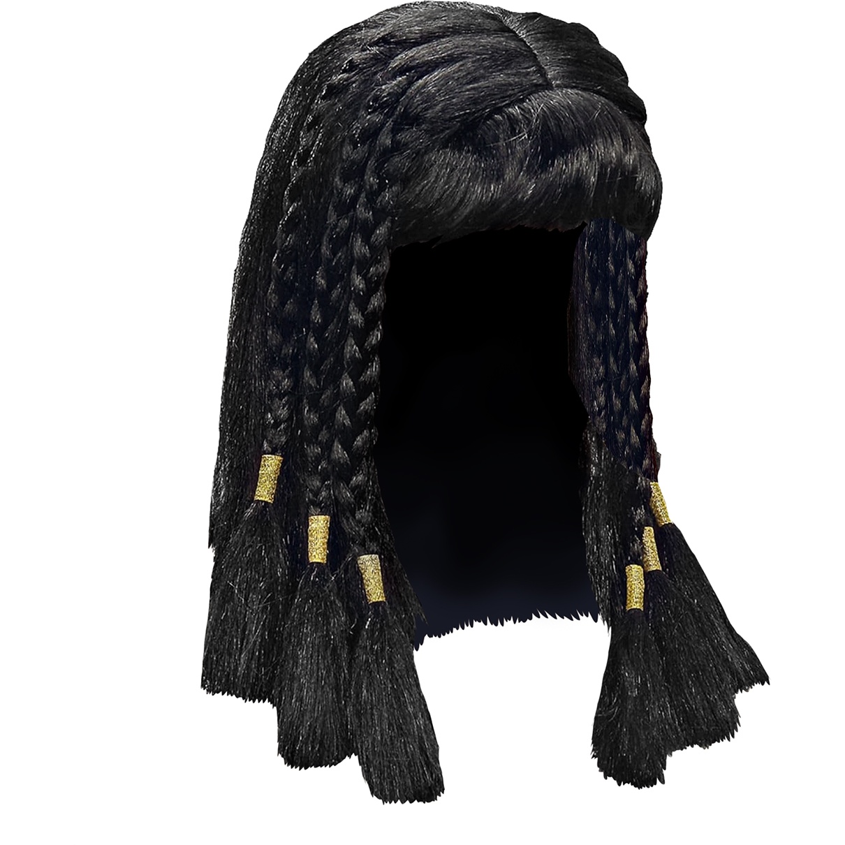 Erzielen Sie einen authentischen Look als Königin des Nils mit dieser Kleopatra-Perücke für Erwachsene. Sie besitzt einen geraden Pony und lange Partien mit seitlichen Zöpfen, die durch goldene Details den klassischen ägyptischen Stil betonen. Das Volumen und der Fall der Perücke sorgen für ein dramatisches, elegantes Finish, das jede historische oder theatralische Verkleidung komplettiert. Die Einheitsgröße ist so gestaltet, dass sie den meisten erwachsenen Kopfformen bequem passt.