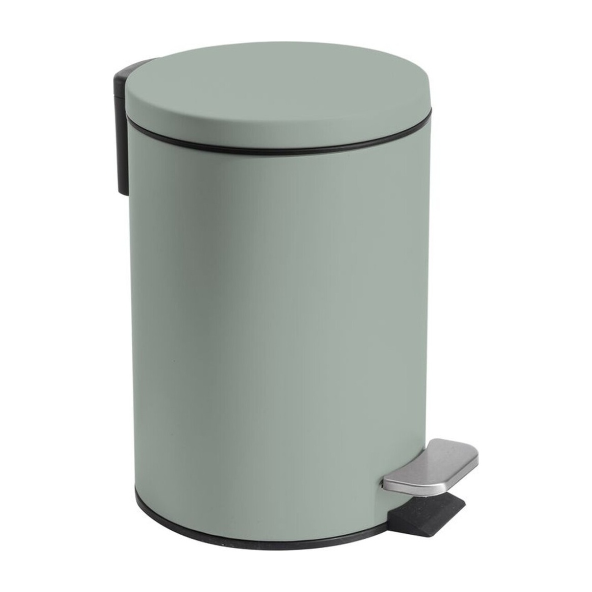 Kompakter Pedalabfalleimer mit minimalistischem Design und mattem Grünton, entwickelt, damit er sich stilvoll in jede Umgebung einfügt.