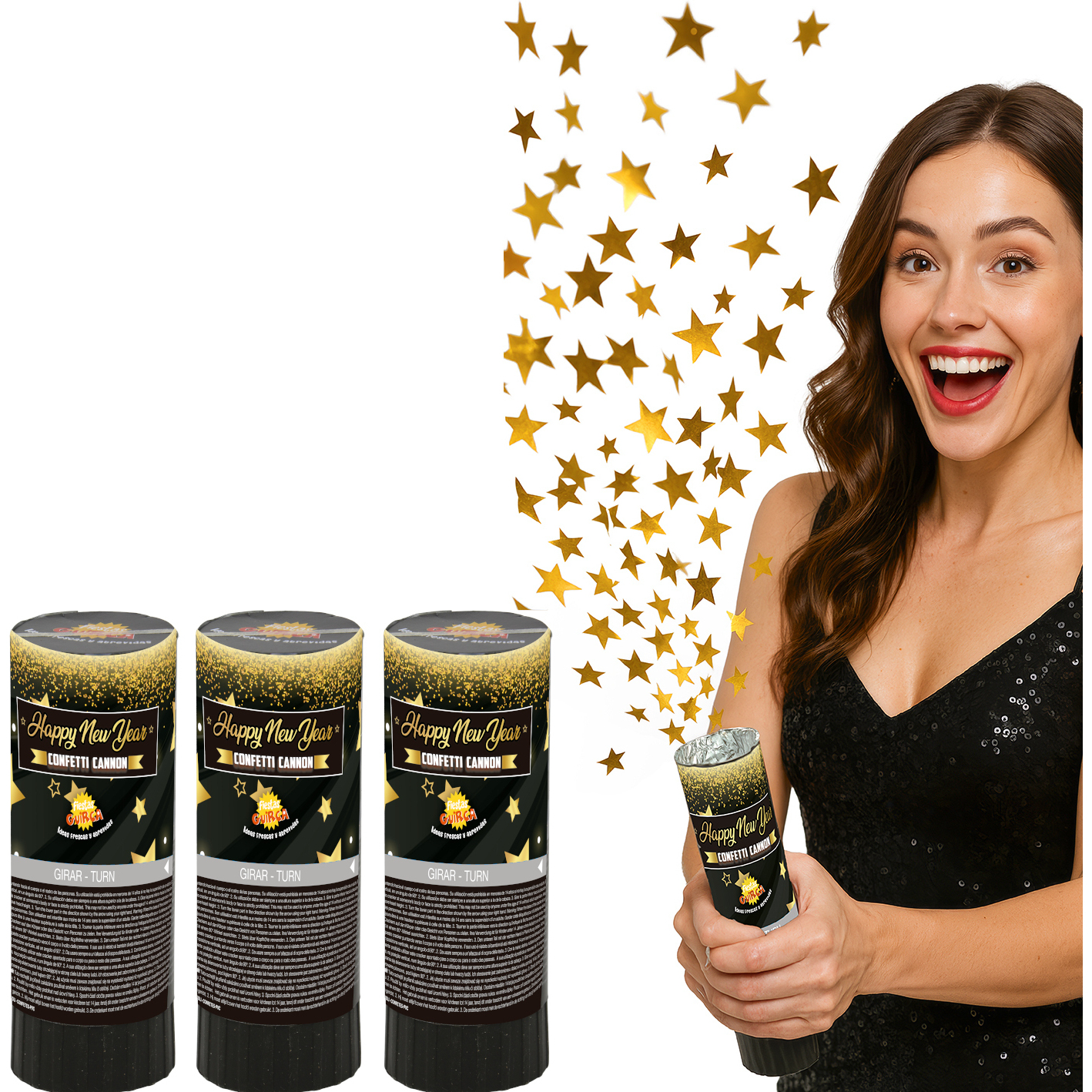 Konfettikanone, 10,5 cm mit goldenen Sternen - 3 Stück