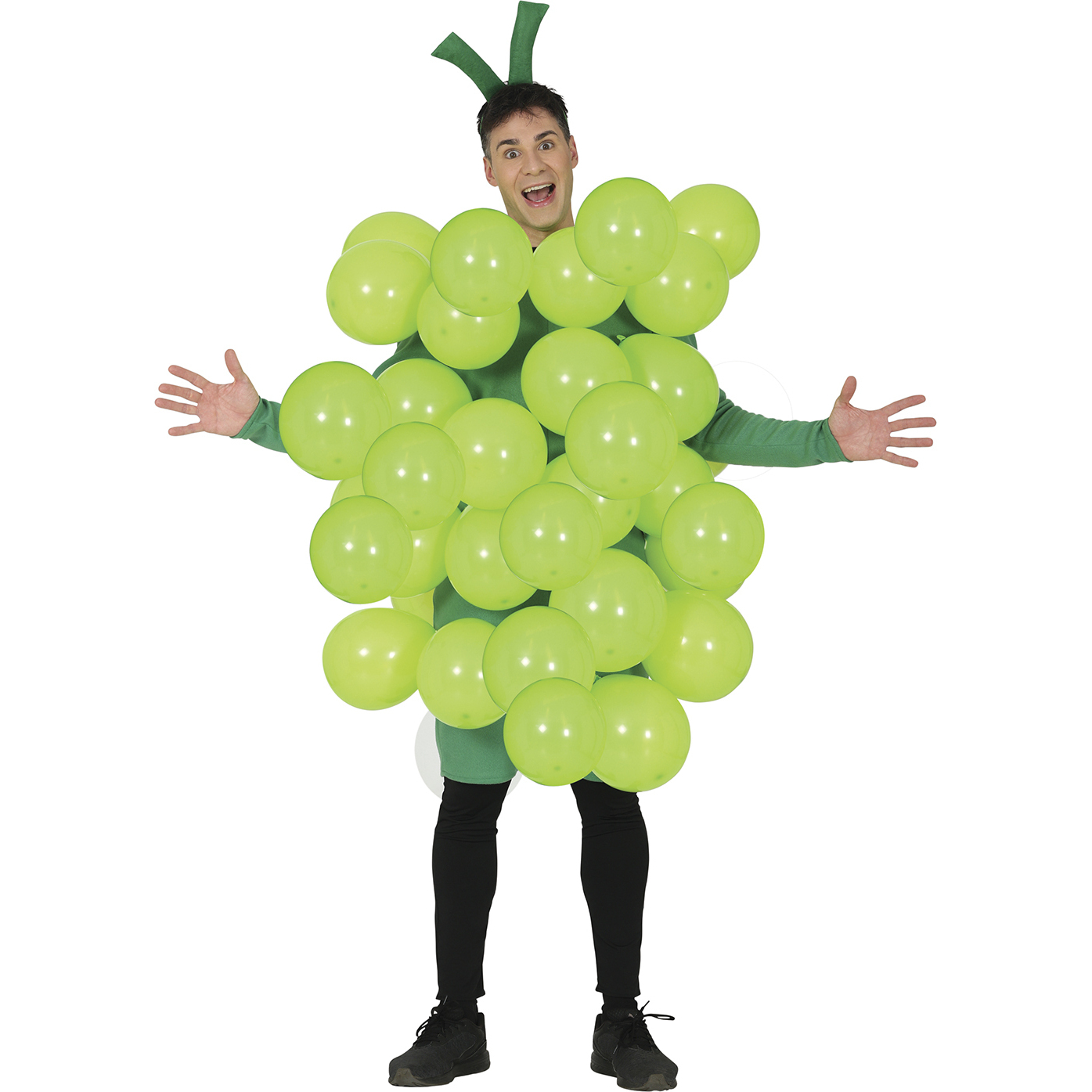 Ein lustiges Kostüm, bestehend aus einem grünen Einteiler, zu dem Sie die beigelegten Luftballons mit den mitgelieferten Klebstoffen anbringen. So verwandeln Sie sich in eine super lustige und originelle grüne Traube.