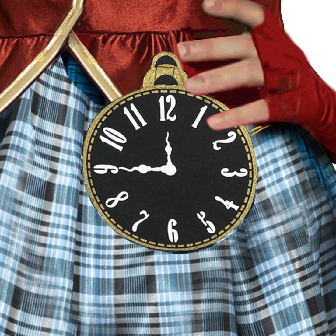 Ein unterhaltsames Modell der verrückten Hutmacherin für Damen. Es handelt sich um ein Kleid, das mit einem Hut und Ärmeln vervollständigt wird.