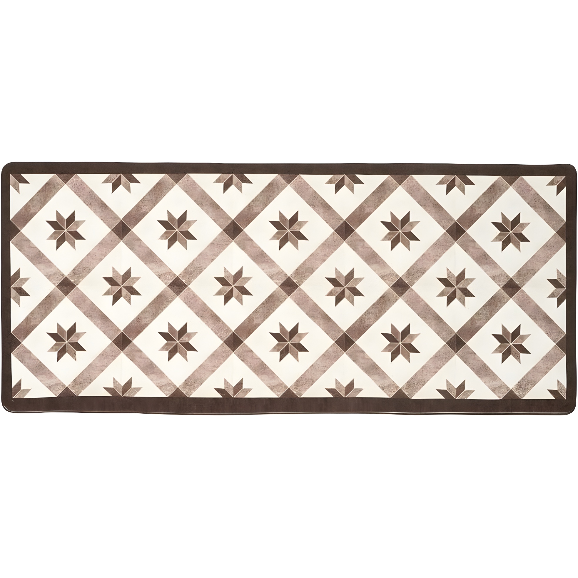 Teppich mit ansprechendem Hydraulikfliesen-Design, das Ihrer Küche Persönlichkeit und Wärme verleiht.
