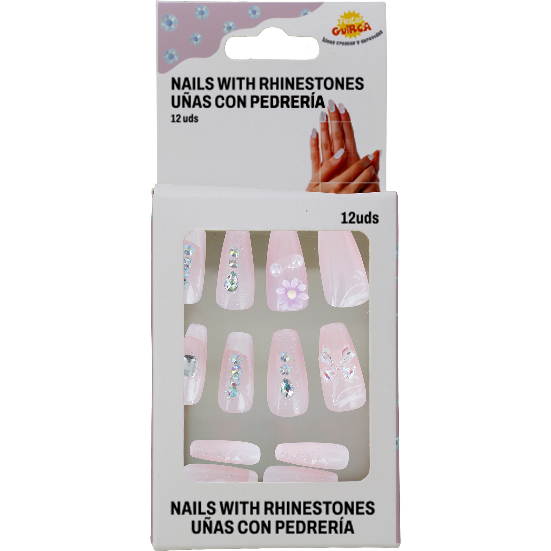 Künstliche Fingernägel mit Strasssteinen - 12 Stück
