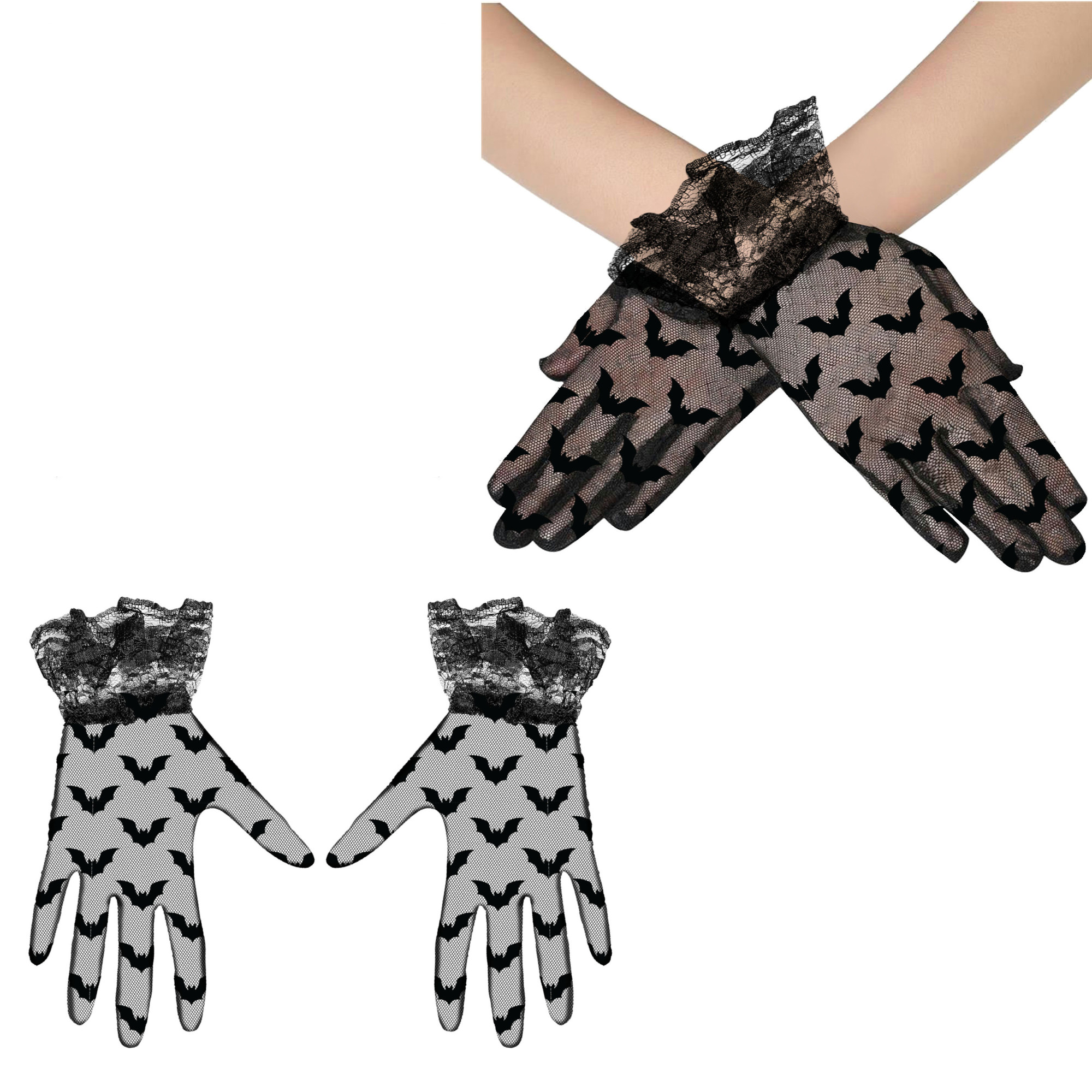 Kurze Handschuhe mit schwarzen Fledermäusen, 22 cm
