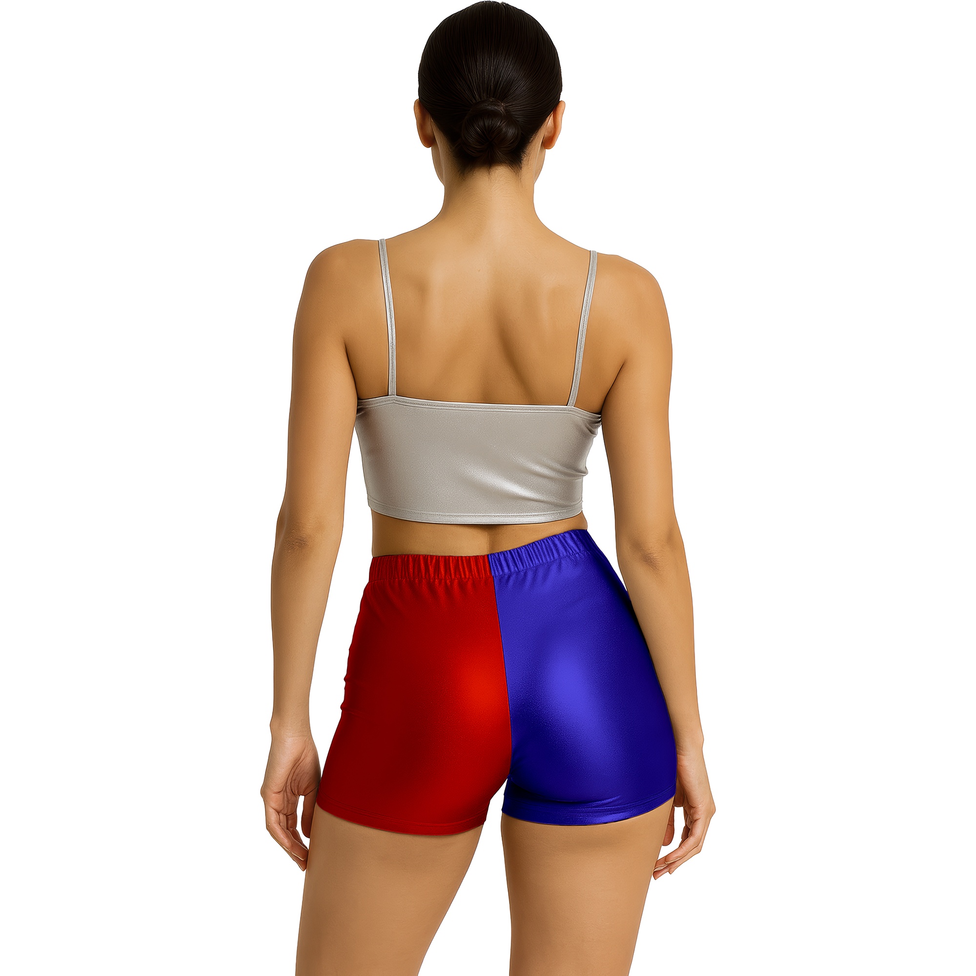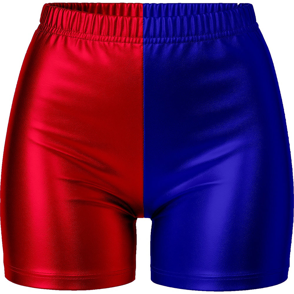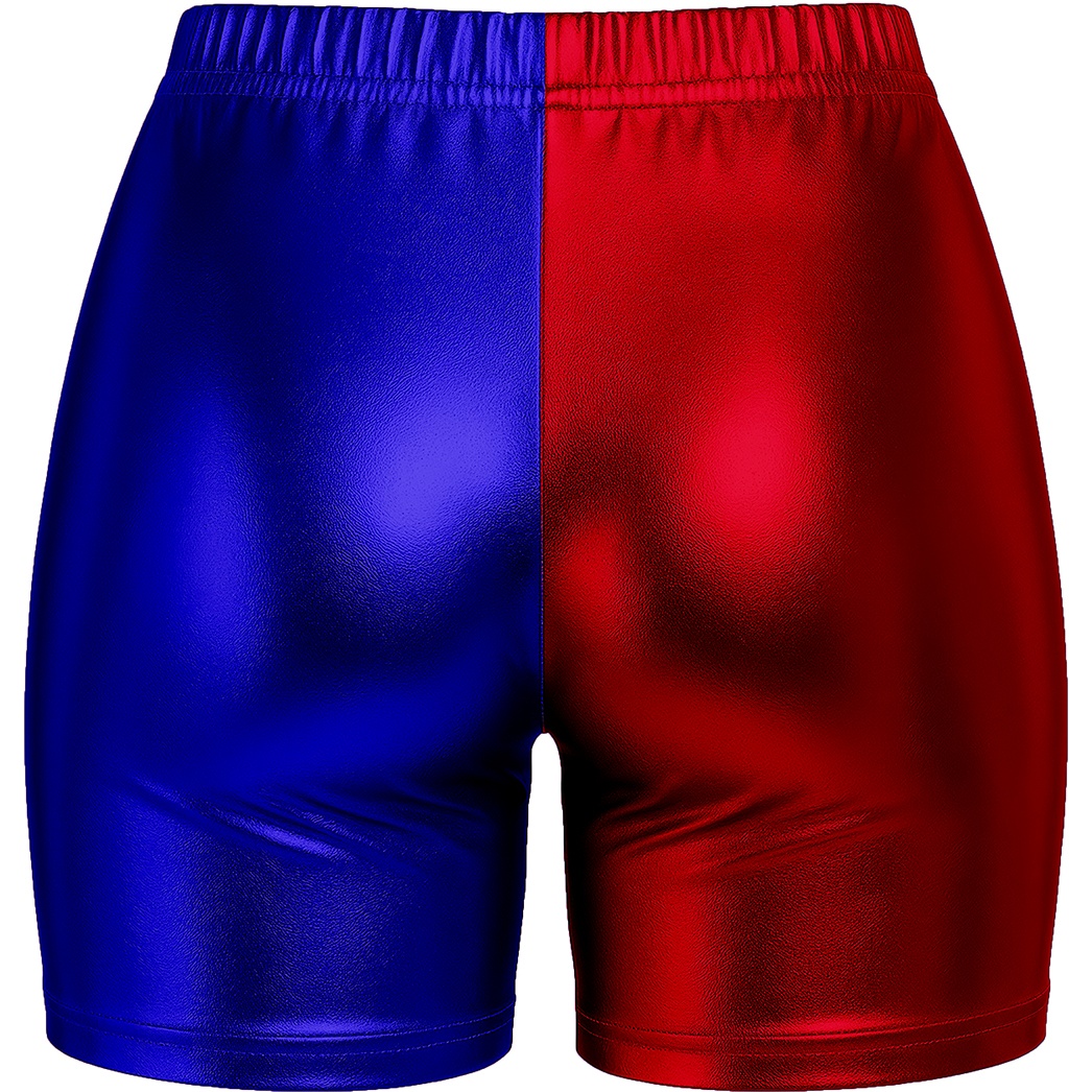 Kurz geschnittene Shorts mit metallischem Block?Finish in Rot und Blau, inspiriert vom ikonischen Stil von Harley Quinn. Die figurbetonte Passform und der elastische Bund bieten Ihnen einen bequemen und vorteilhaften Sitz. Der satinierte Polyesterstoff sorgt für attraktiven Glanz, der bei Partys, Cosplay?Events und Fotoshootings zur Geltung kommt. Perfekt kombinierbar mit passenden Tops und thematischen Accessoires, damit Sie auf Karneval und Kostümveranstaltungen mit einem auffälligen Outfit überzeugen.