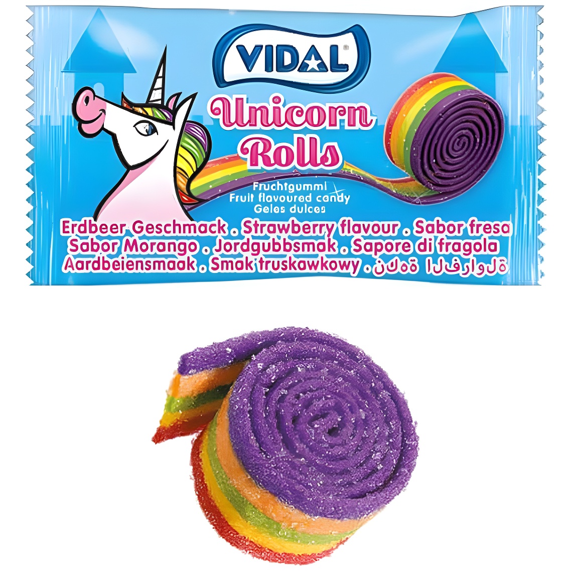 Erleben Sie die Rolla Belta Pica Unicornio: intensiver Erdbeergeschmack in einem bunten, auffälligen Format. Jedes Band ist aufgerollt und einzeln verpackt - ideal für den unkomplizierten und besonders spaßigen Genuss zwischendurch. Das Einhorn-Design und die leuchtenden Farben machen diese Bänder zur perfekten Wahl für Mottopartys, Goodie-Bags oder kleine Geburtstagsaufmerksamkeiten. Die praktische Verpackung ist zum Teilen und Verteilen an Ihre Gäste gedacht.