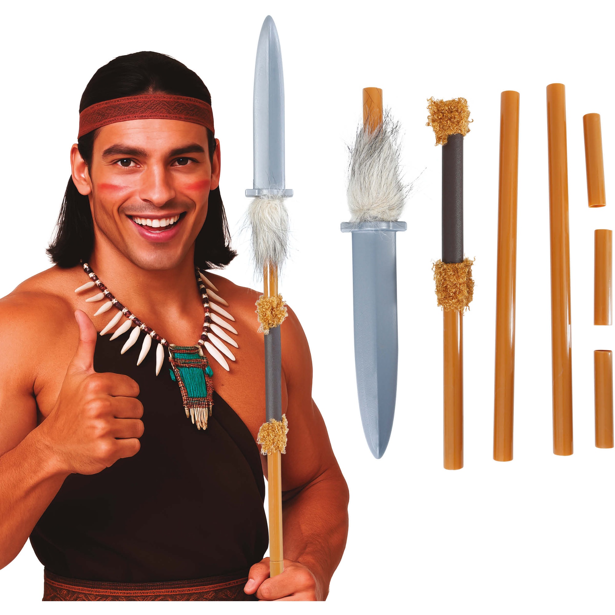 Abnehmbare Lanze im Indianer-Stil, konzipiert, um Kostüme und Szenen zu vervollständigen. Dank einfacher Montage und des leichten Designs ist sie für Sie bei Umzügen, Karneval und Motto-Partys angenehm zu tragen. Aus sicherem PVC gefertigt, bietet sie ein realistisches Aussehen ohne scharfe Kante. Ideal, wenn Sie traditionelle Looks oder Theaterinszenierungen authentisch ergänzen möchten.