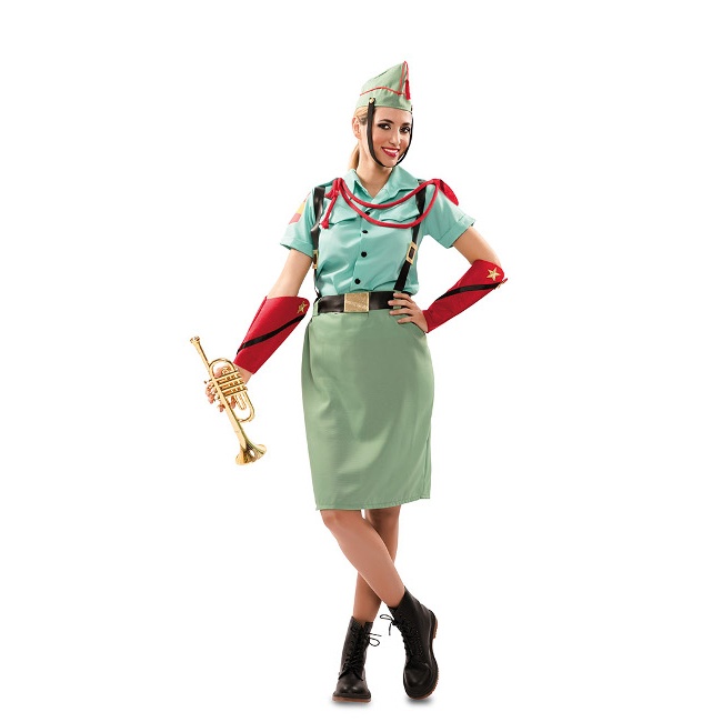 Der Rock hat einen Gummizug hinten an der Taille und ist mit Riemen versehen, die mit Klettverschluss verstellbar sind, damit er besser passt. Dazu gehören rote Armbinden mit schwarzen Details und aufgestickten goldenen Sternen, die Militärmütze mit einer roten Quaste und einem Band, um sie am Kopf zu befestigen. Ein schwarzer Stoffgürtel, der mit einem Klettverschluss geschlossen wird, vervollständigt diesen fantastischen Look.