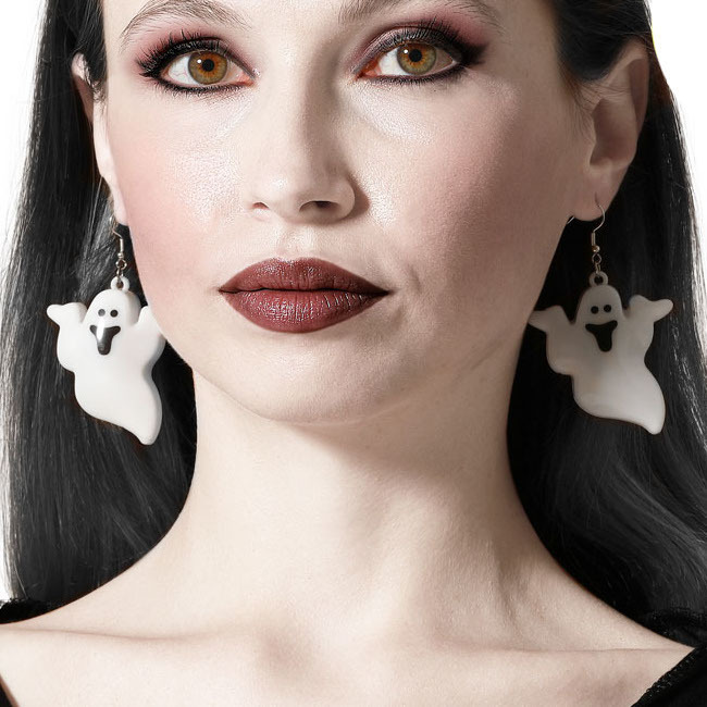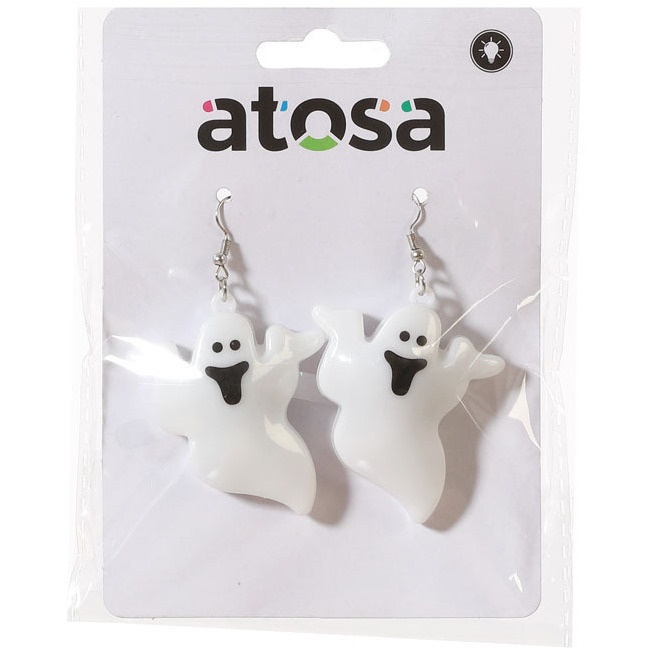 • Weiß geformte Geisterohrringe mit interner LED-Leucht.
