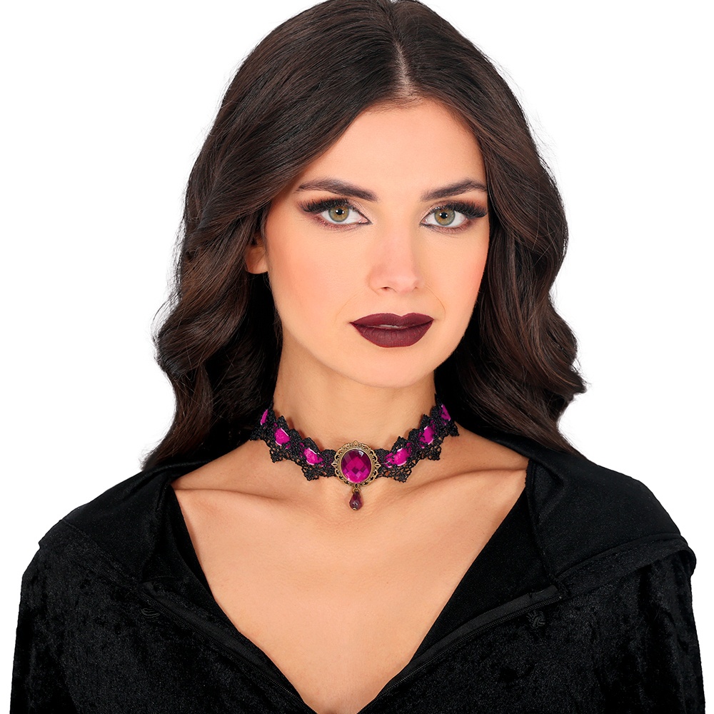 Lila-schwarze bestickte Halskette