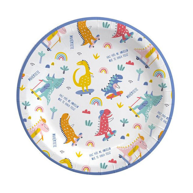 Lustige Dinosaurier-Teller 18 cm - 8 Stück