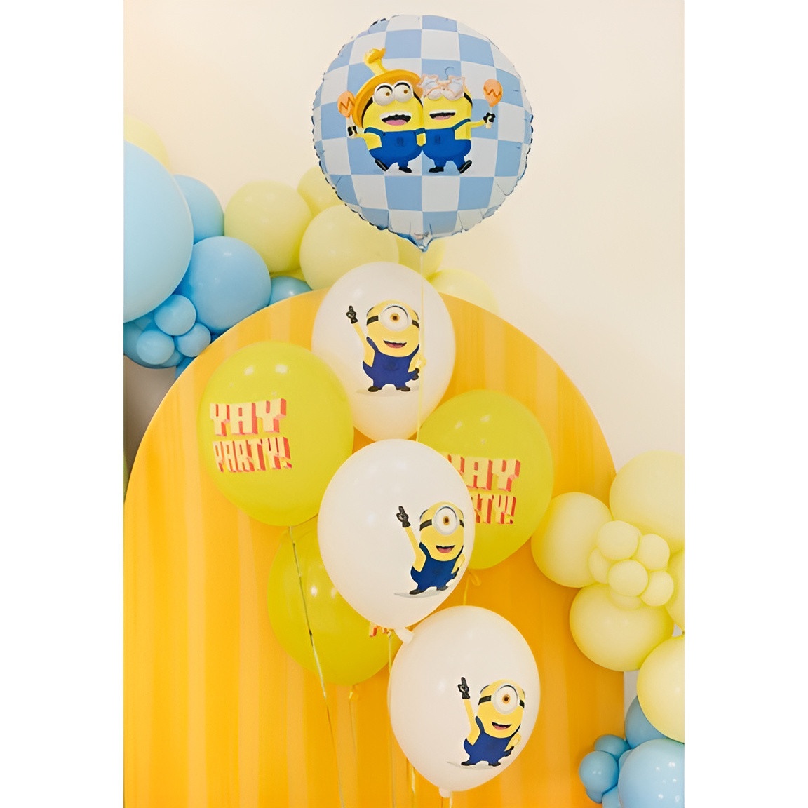Strong Balloons Minions sind beidseitig bedruckte Ballons mit den beliebten Minions-Charakteren und dem Schriftzug "Yay Party!" in Pastellfarben. Jeder Ballon hat aufgeblasen einen Durchmesser von 30 cm und ein fröhliches Design in Weiß- und Honiggelbtönen, das jeder Kinderfeier Spaß verleiht. Sie eignen sich ideal zum Dekorieren von Geburtstagen, als Tischdekoration und um Partyecken mit einem wiedererkennbaren, verspielten Akzent zu gestalten.