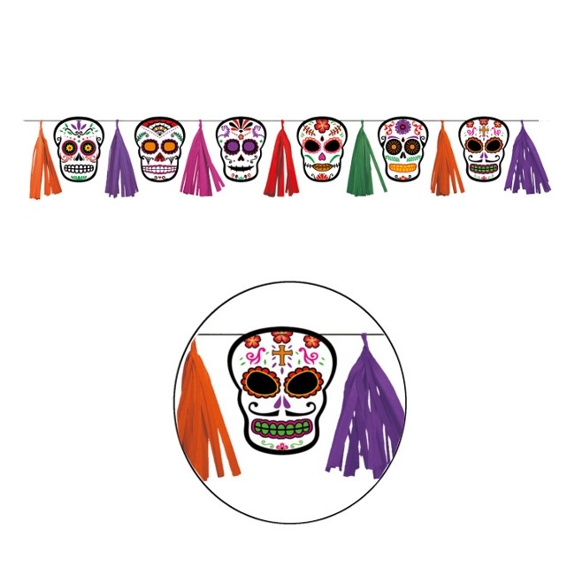Lassen Sie sich diese bunte Girlande nicht entgehen, die Sie in Ihre Partydekoration zum Tag der Toten einbauen können.