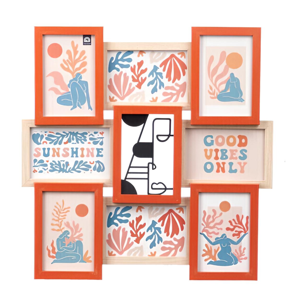Mehrfarbiger Bilderrahmen mit Metall für 8 Fotos 10 x 15 cm