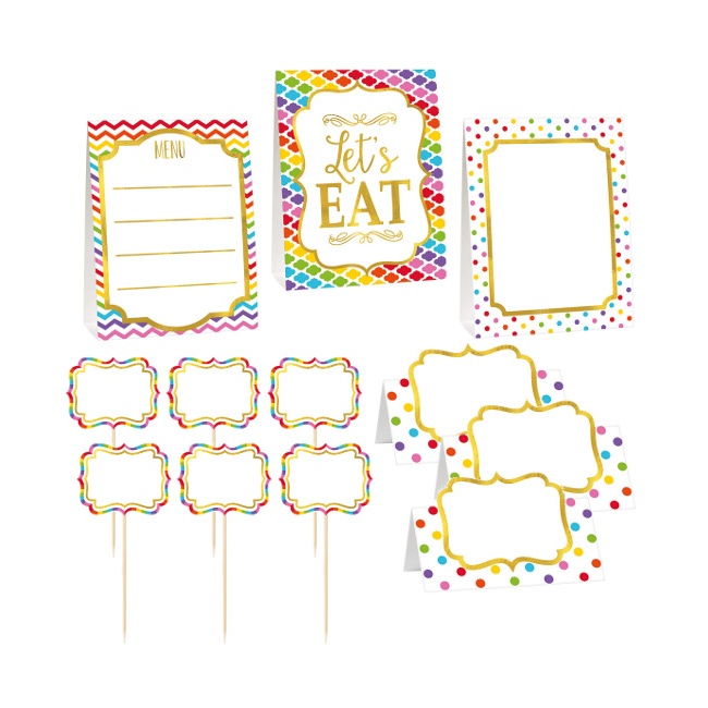 Set zur Dekoration von Süßigkeiten, bestehend aus 3 Platzhaltern, 6 Plektren mit Karte und 3 Diptychen mit verschiedenen Motiven.