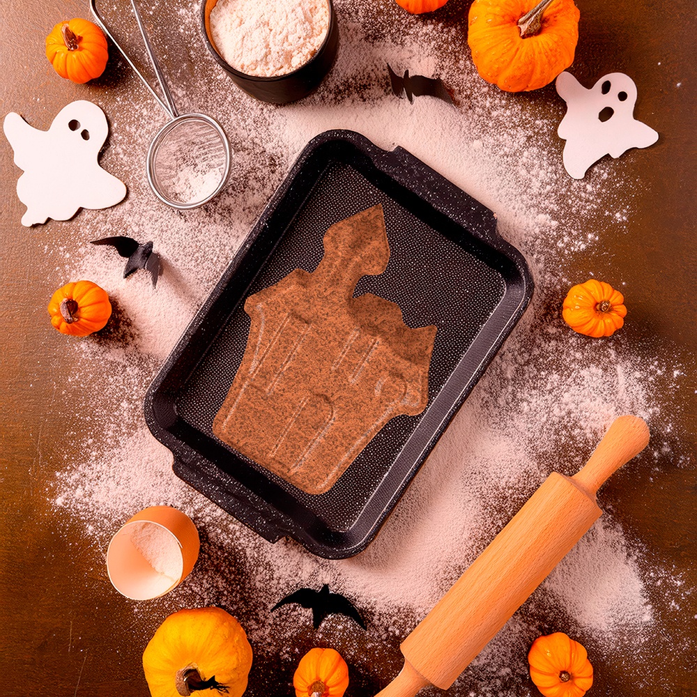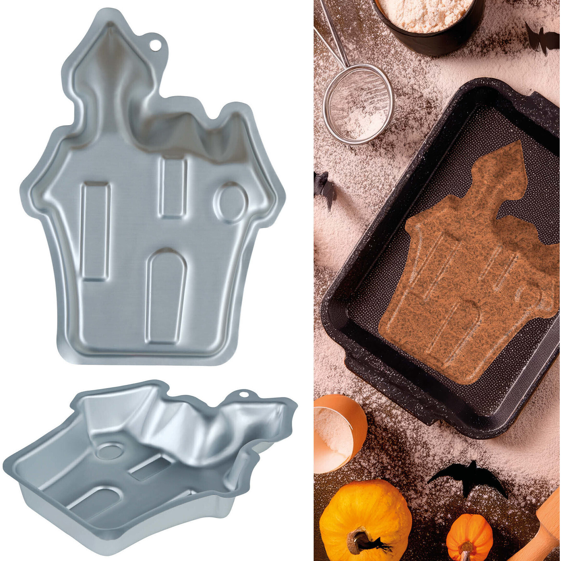 Metall-Backform in Form eines gruseligen Hauses, 27 x 21 cm