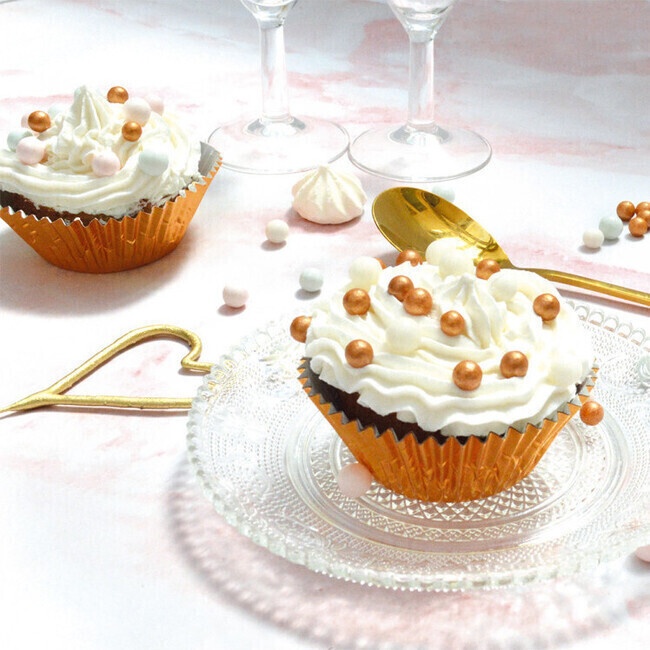 .Zutaten Goldperlen: Zucker, Weizenmehl, Weizenstärke, Maisstärke, Farbstoffe: E174, E160a(ii), E100; Stabilisator: Gummi arabicum, Glukosesirup, Gelatine (Rind), Überzugsmittel: Schellack.