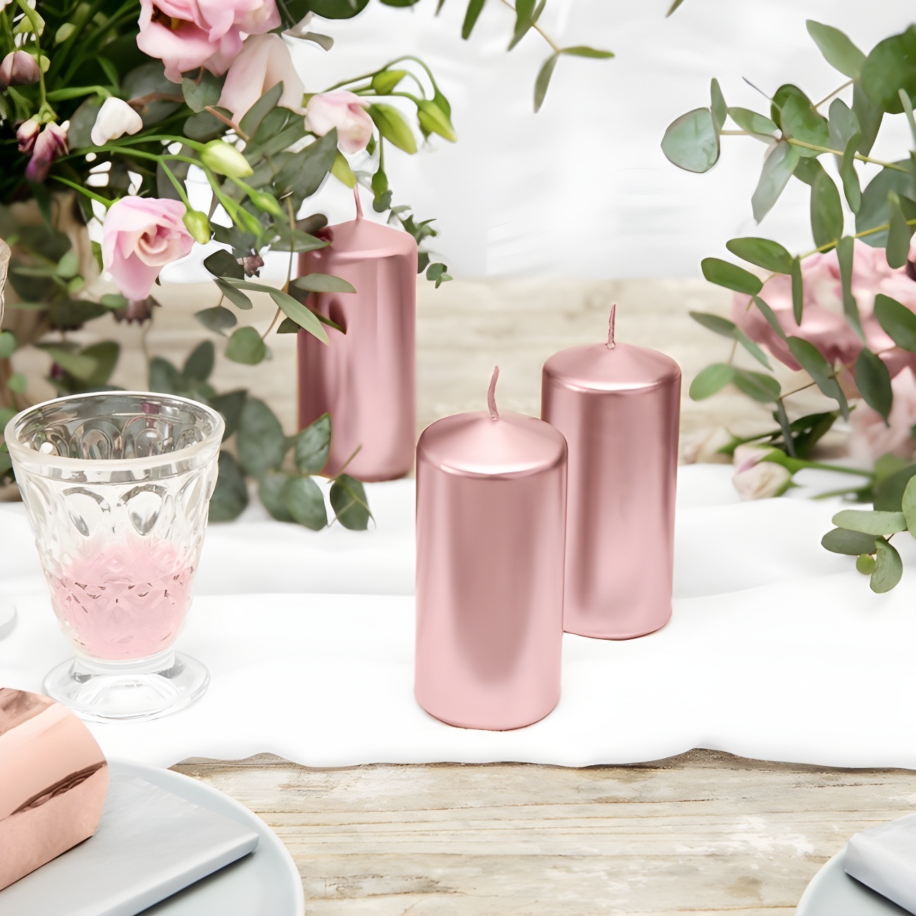 Wunderschöne Kerzen im Metallic-Look und in 3 möglichen Farben, die Sie für verschiedene Zwecke verwenden können.