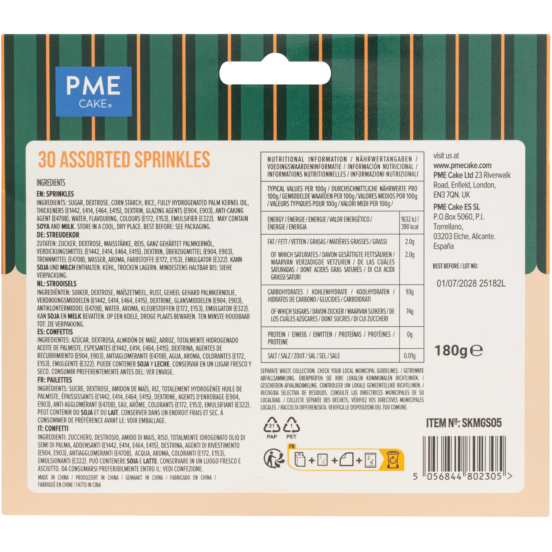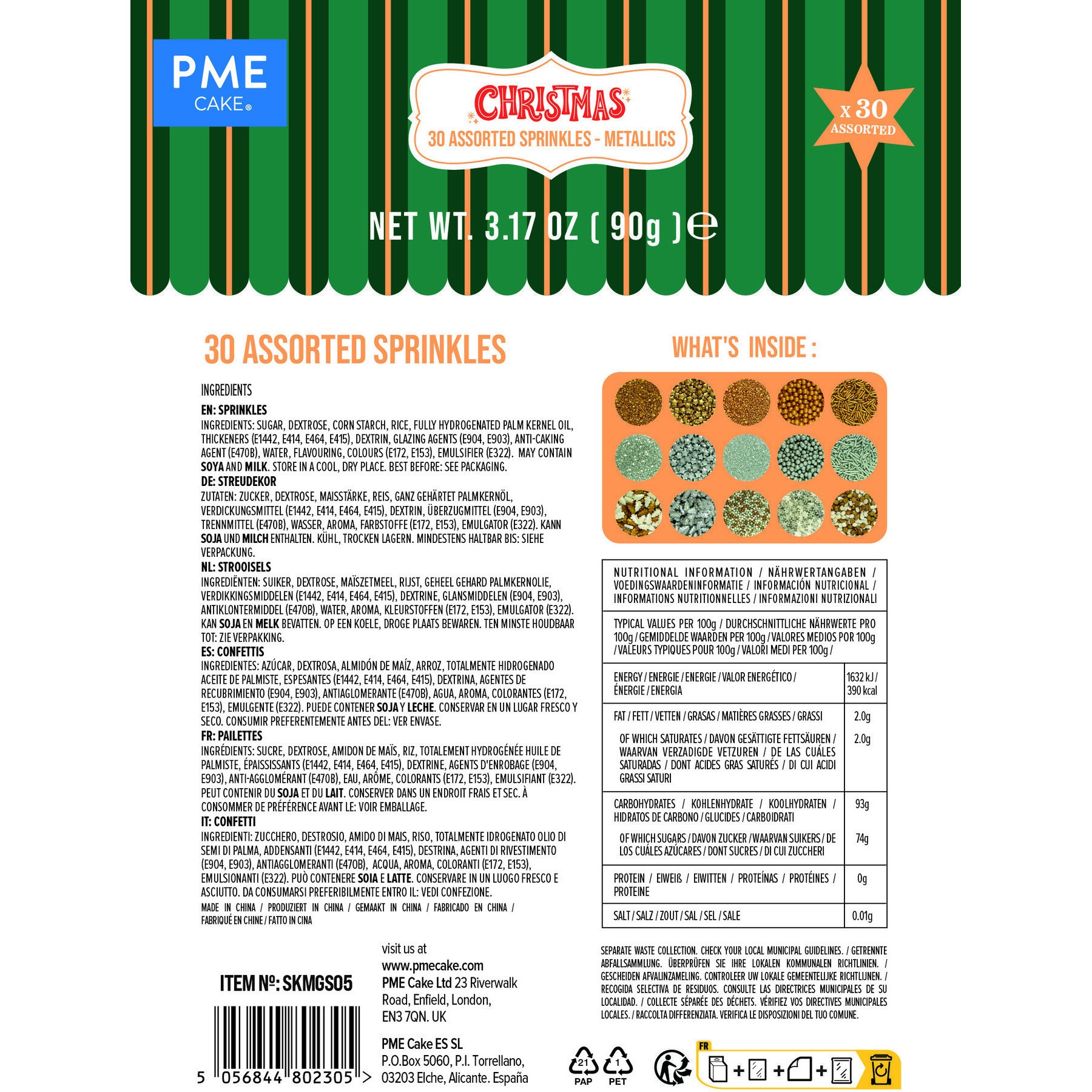 Metallisches Streusel-Set, 30 Sorten - PME - 180 g