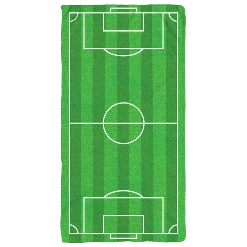 Strandtuch mit Fußballfeld-Design - ideal für Fans, die ihre Leidenschaft gerne mit an Strand oder Pool nehmen möchten.