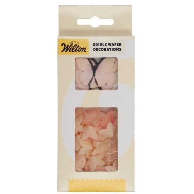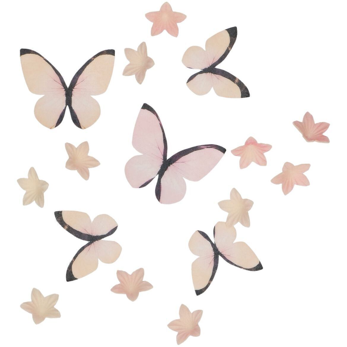 Mini-Blumen- und Schmetterlingsoblaten in Pfirsichrosa - 30 Stück