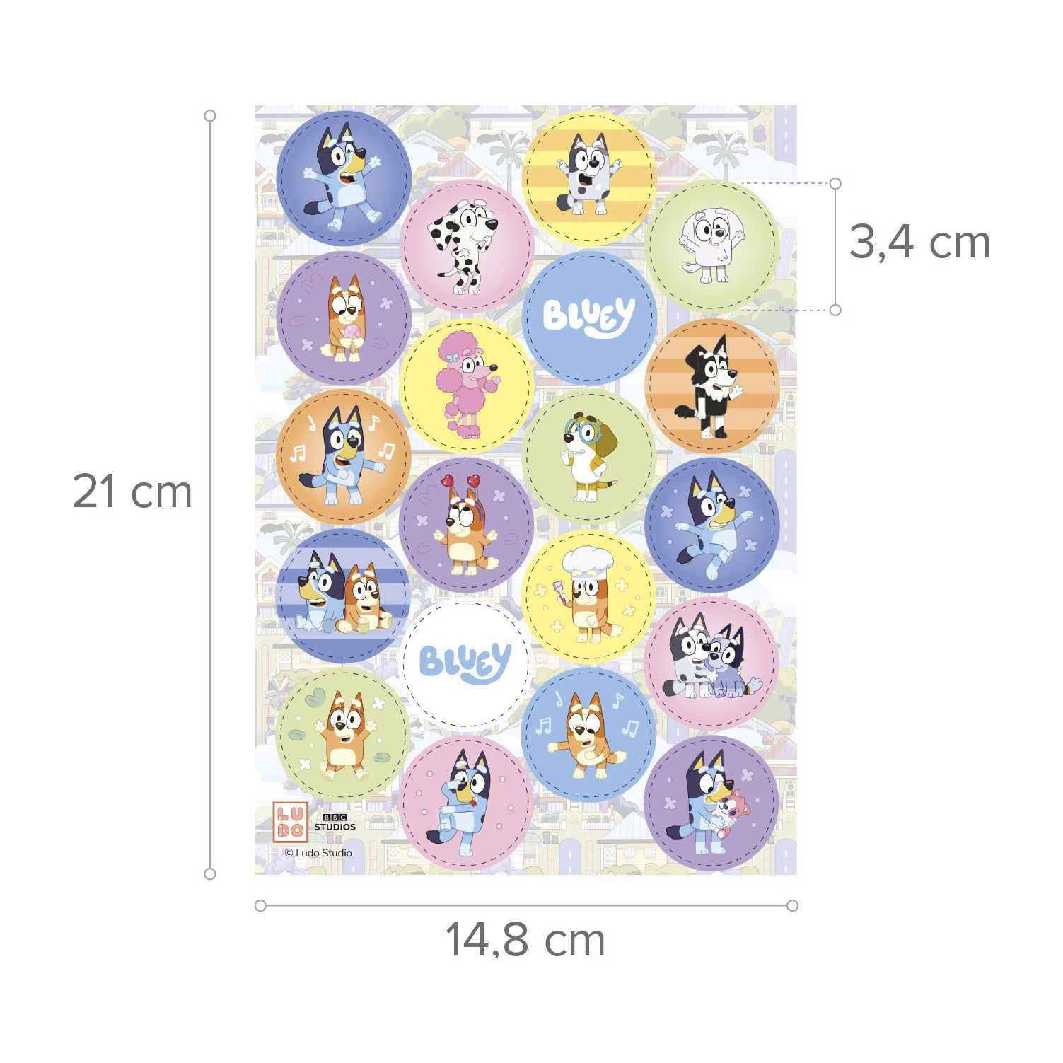 Mini-Oblaten-Taler mit Bluey und Bingo Zero, Ø 3,4 cm