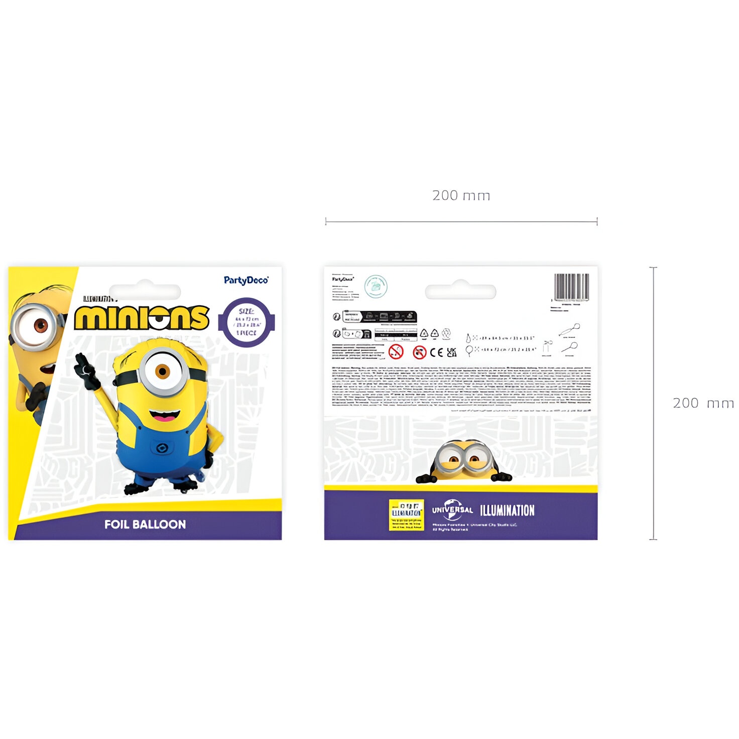 Offizieller Minion Mel Folienballon in leuchtenden Gelb- und Blautönen. Größe vor dem Aufblasen: ca. 89 x 84,5 cm; aufgeblasene Größe: ca. 64 x 72 cm. Für Befüllung mit Luft oder Helium geeignet - ideal, um Kinderfeste zu dekorieren und Ihrem Event eine verspielte Note zu verleihen. Der Ballon ist selbstsiegelnd und verfügt über integrierte Aufhänger für eine einfache Befestigung. Ein Aufblasröhrchen liegt bei, um das Befüllen zu erleichtern.