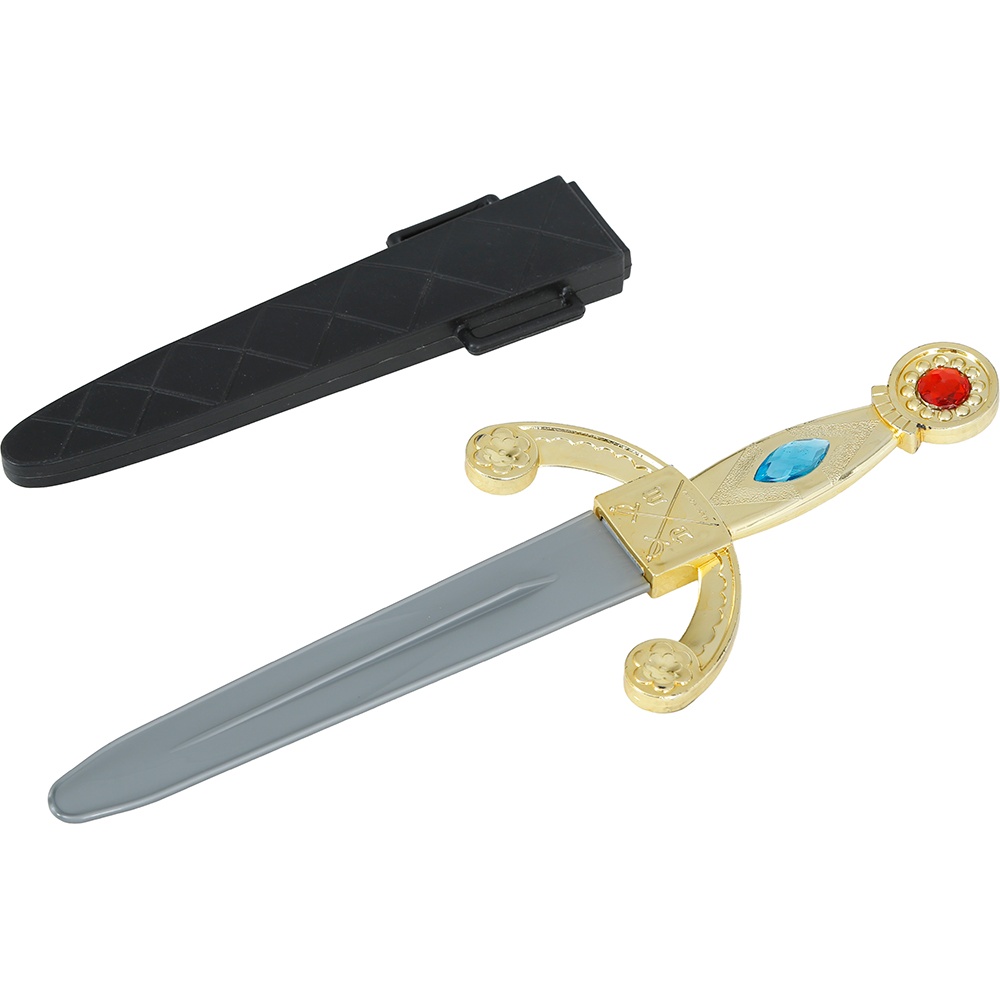 Das perfekte Accessoire, um Ihr mittelalterliches oder Fantasy-Kostüm zu vervollständigen. Dieser Dolch aus PVC wirkt realistisch dank verzierter Griffgestaltung und goldfarbener Details, bleibt dabei durch die stumpfe Klinge sicher. Die Scheide sorgt für einen authentischen Look und erleichtert den Transport bei Events und Cosplay-Auftritten.