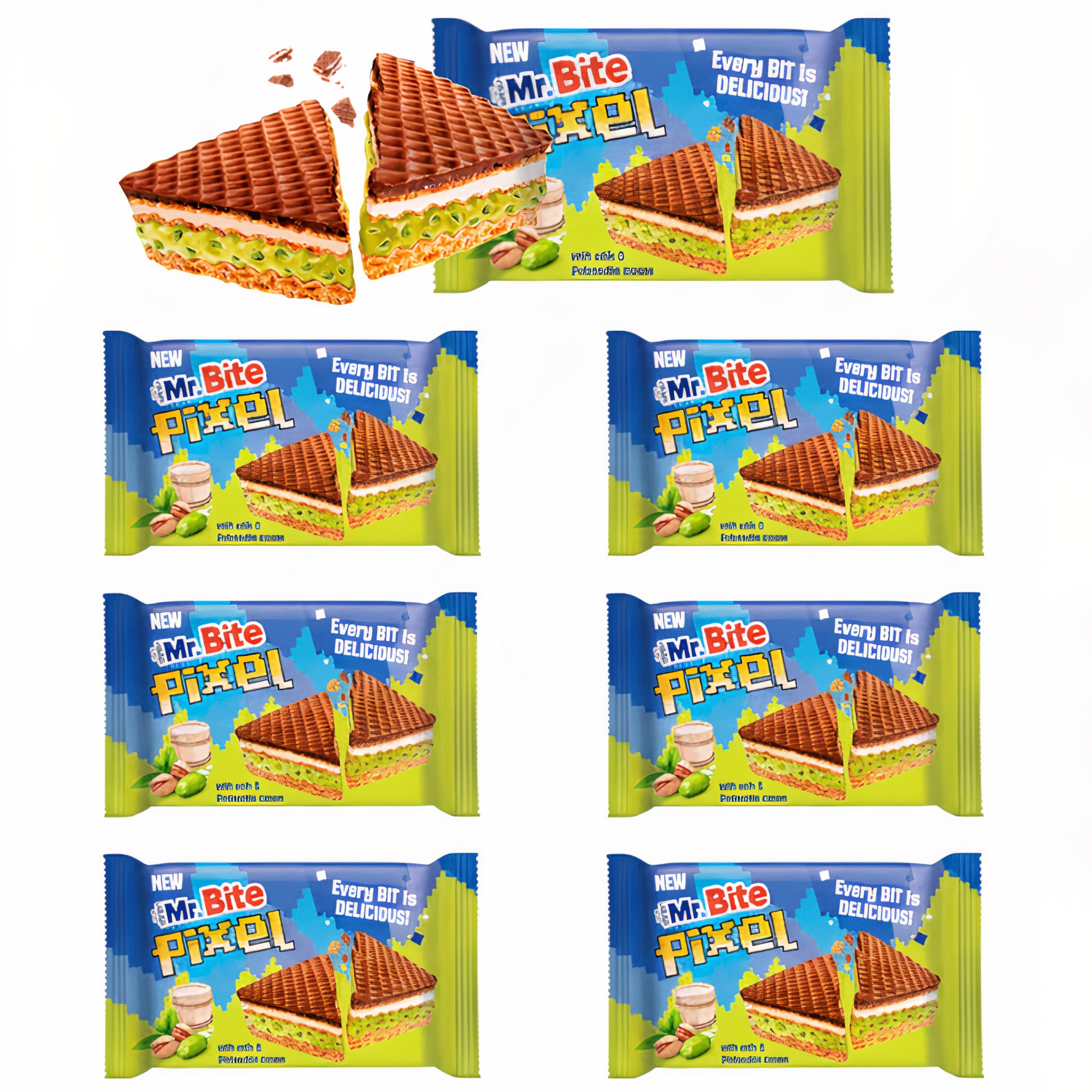 Mr. Bitel Pixel Schokoladenwaffel mit Pistaziencreme, 30 g - 6 Stück