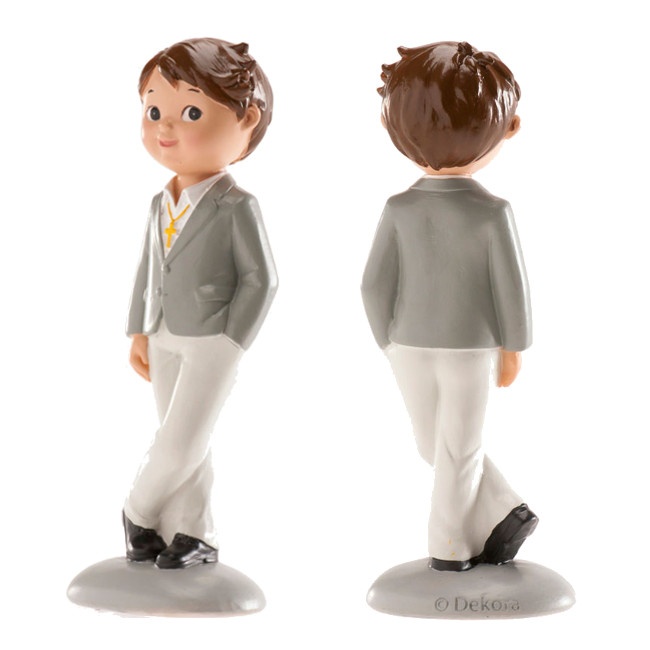 My First Communion Tortenaufsatz für braunen Jungen - 15 cm