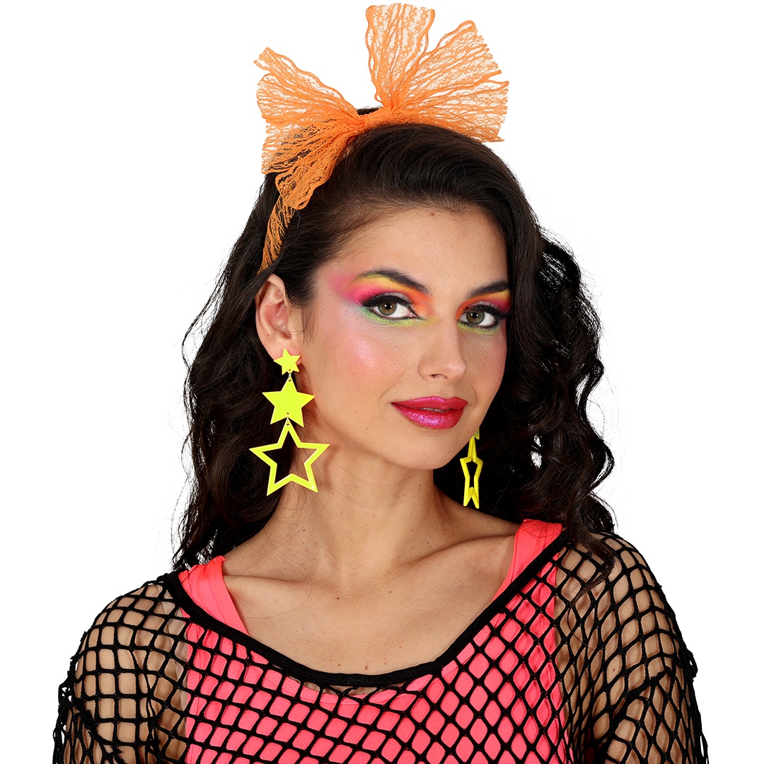 Ohrringe mit Sternmotiv in Neonfarben - perfekt, um Ihren 80er?Look und Party?Outfits zu vervollständigen.