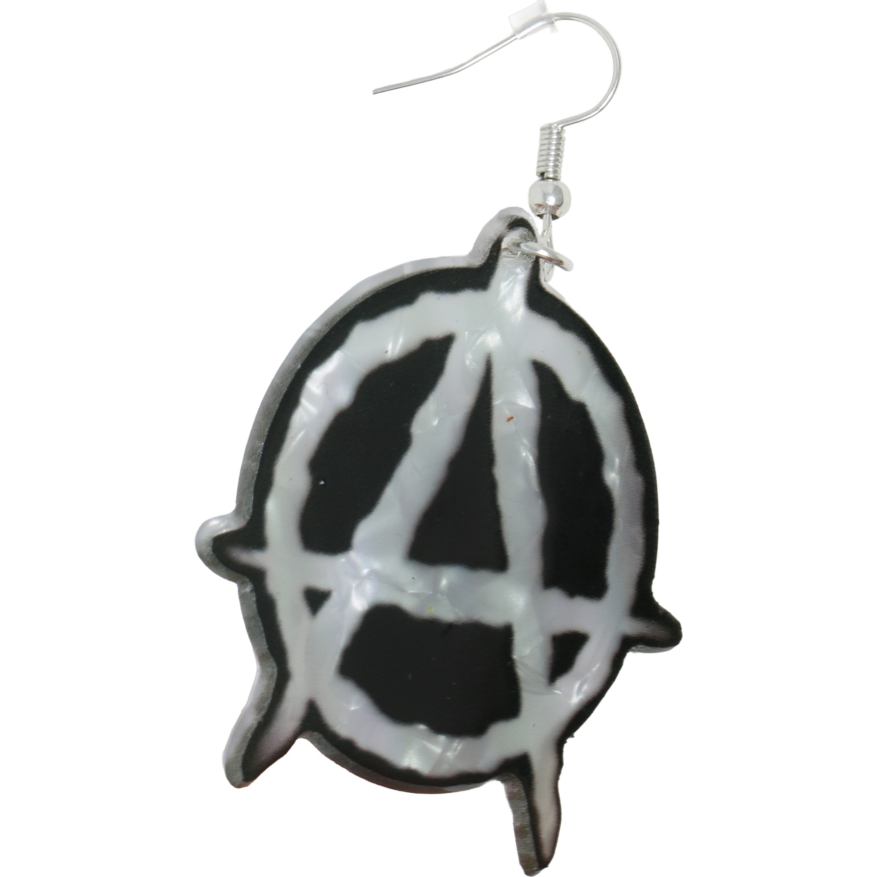 Punk-Ohrringe mit Anarchie-Symbol. Mutiges, unverkennbares Design, das Ihren Gothic- und Cosplay-Looks einen rebellischen Akzent verleiht. Hergestellt aus Metall und PVC für klaren Kontrast und ein auffälliges Erscheinungsbild. Mit Fishhook-Haken für schnelles Anlegen und angenehmen Tragekomfort. Ein leichtes Accessoire, das bei Kostümen, Fotoshootings oder alternativen Stylings hervorsteht.