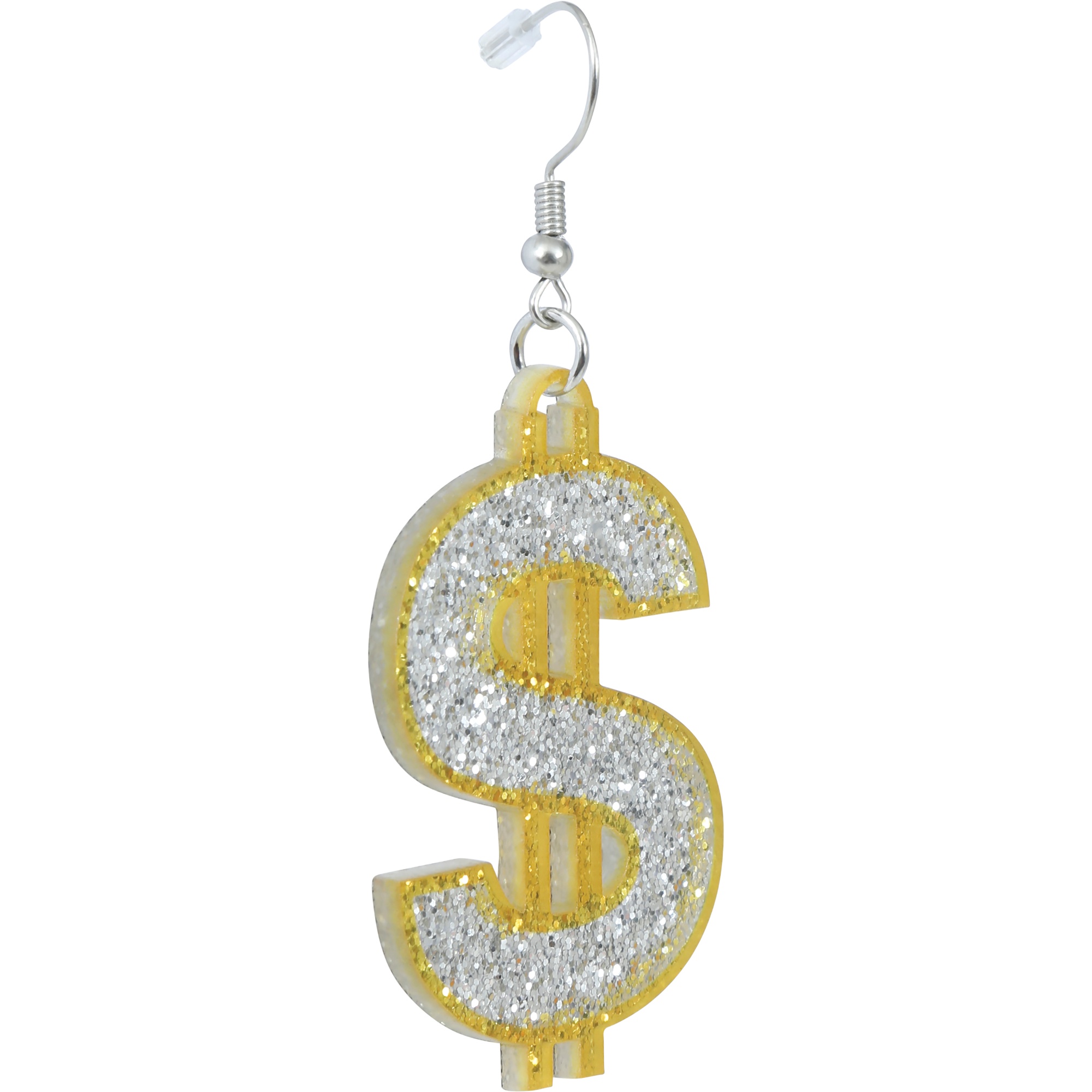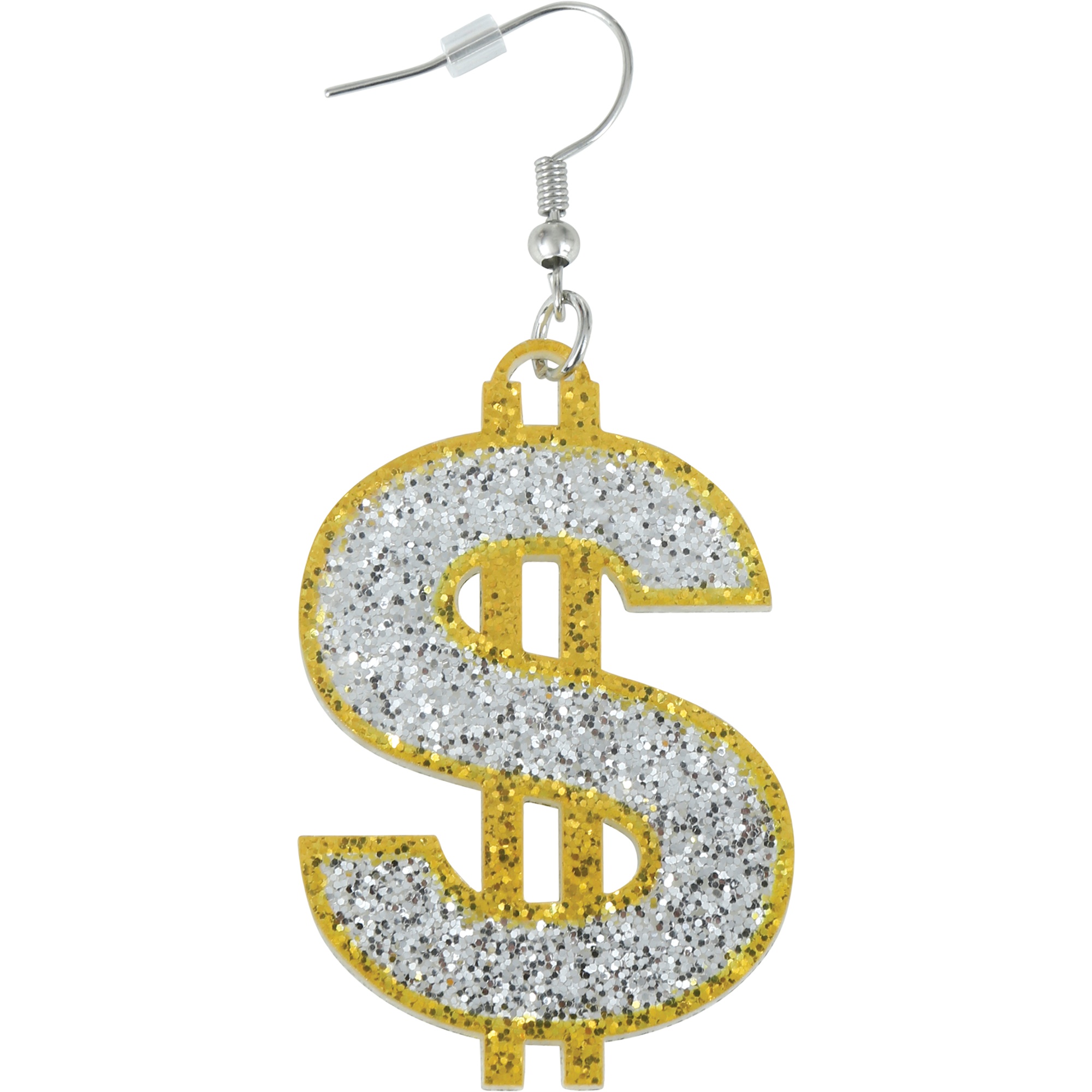 Dollar-Ohrringe mit auffälligem Dollarzeichen-Design und glänzender Oberfläche.