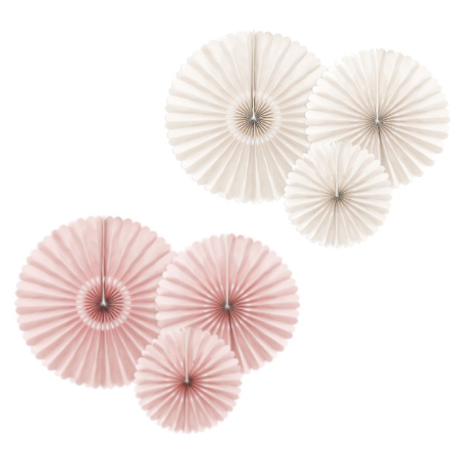 Mit diesen Accessoires können Sie die Umgebung Ihrer Feier oder Ihres Sweet Table dekorieren. Sie können sie von der Decke oder an der Wand aufhängen, da sie zu diesem Zweck mit einem dünnen weißen Seil versehen sind. Wenn sie aufgefaltet sind, können Sie sie mit einem Klebestreifen, der an einer der Seiten angebracht ist, befestigen.
