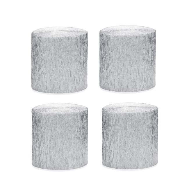 Besteht aus einer Packung mit 4 Rollen Krepppapier mit Metallic-Look.