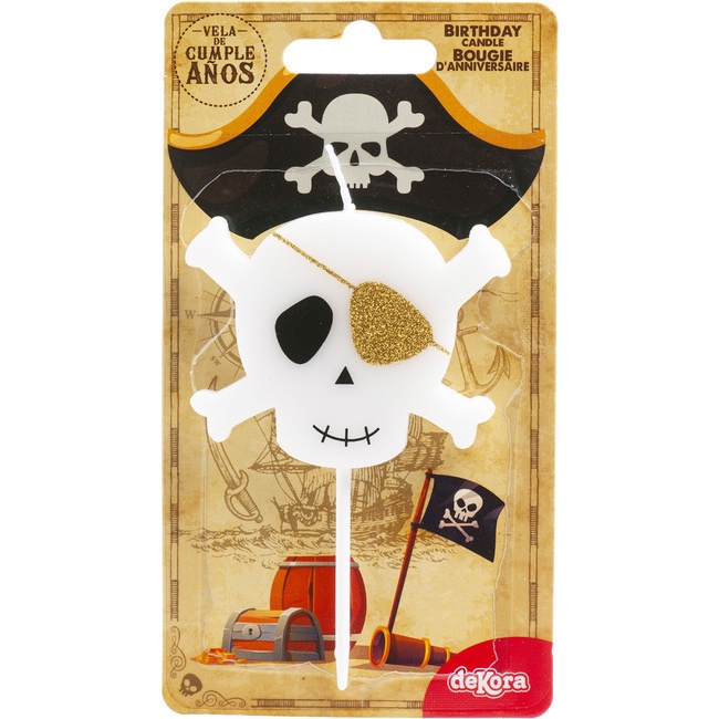 Verleihen Sie Ihrer Piratenparty eine persönliche Note mit dieser tollen Kerze mit Piratenschädel.