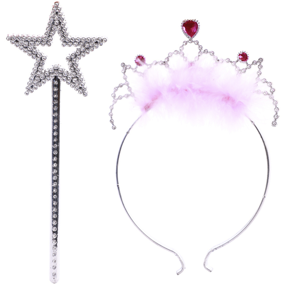• Enthält: Zauberstab und Tiara mit rosa Federn und funkelndem Strassbesatz.