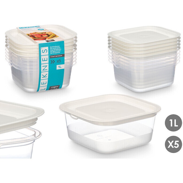Quadratischer 1 L Tupper mit Deckel - 5 Stück
