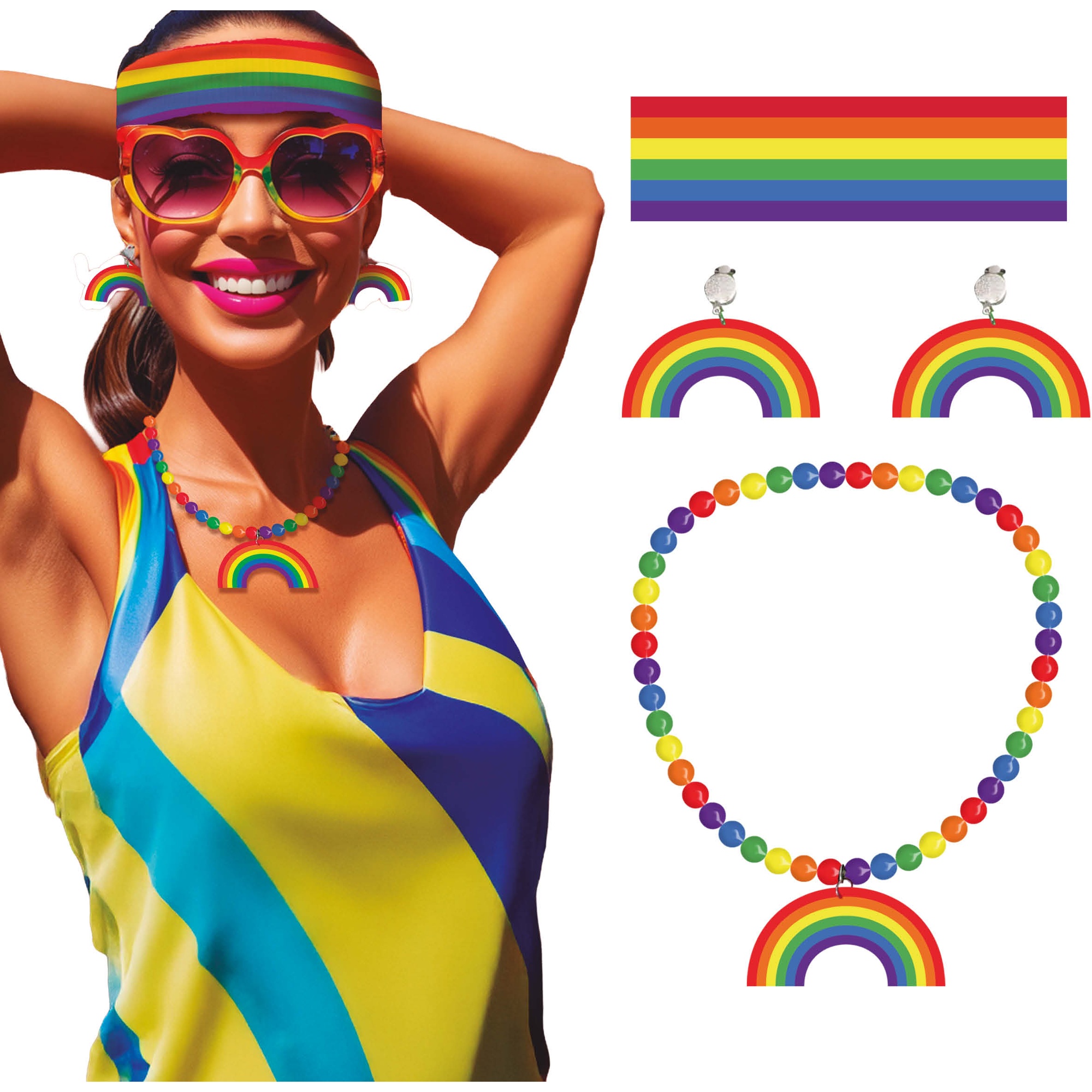Regenbogen-Schmuckset entwickelt, um Ihrem Look Farbe und Energie zu verleihen. Es zeigt ein lebendiges Regenbogenmotiv, das besonders bei Pride-Events und anderen Festen hervorsticht. Die Teile sind bewusst auffällig und zugleich komfortabel gestaltet, sodass Sie sie mühelos den ganzen Tag tragen können. Ideal, um fröhliche Outfits zu ergänzen oder als Geschenk mit einer klaren Botschaft von Farbe und Sichtbarkeit.